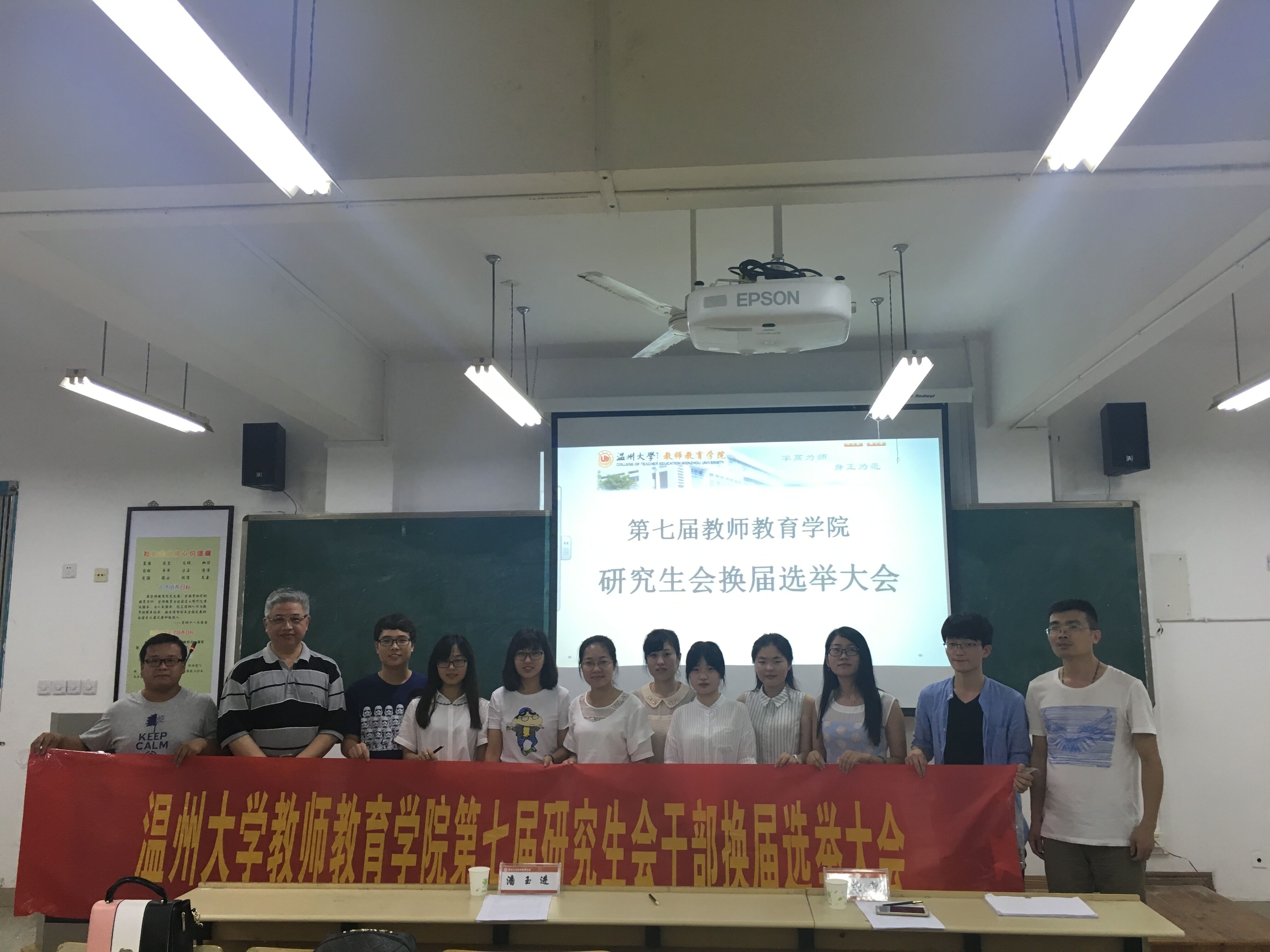 2016年6月16日晚18:30,第七届教师p站视频 研究会干部换届选举大会在南校区9C103召开。参会的领导老师有教师p站视频 副院长潘玉进老师、15级研究生班主任邓纯考老师,还有14级、15级研究生们。