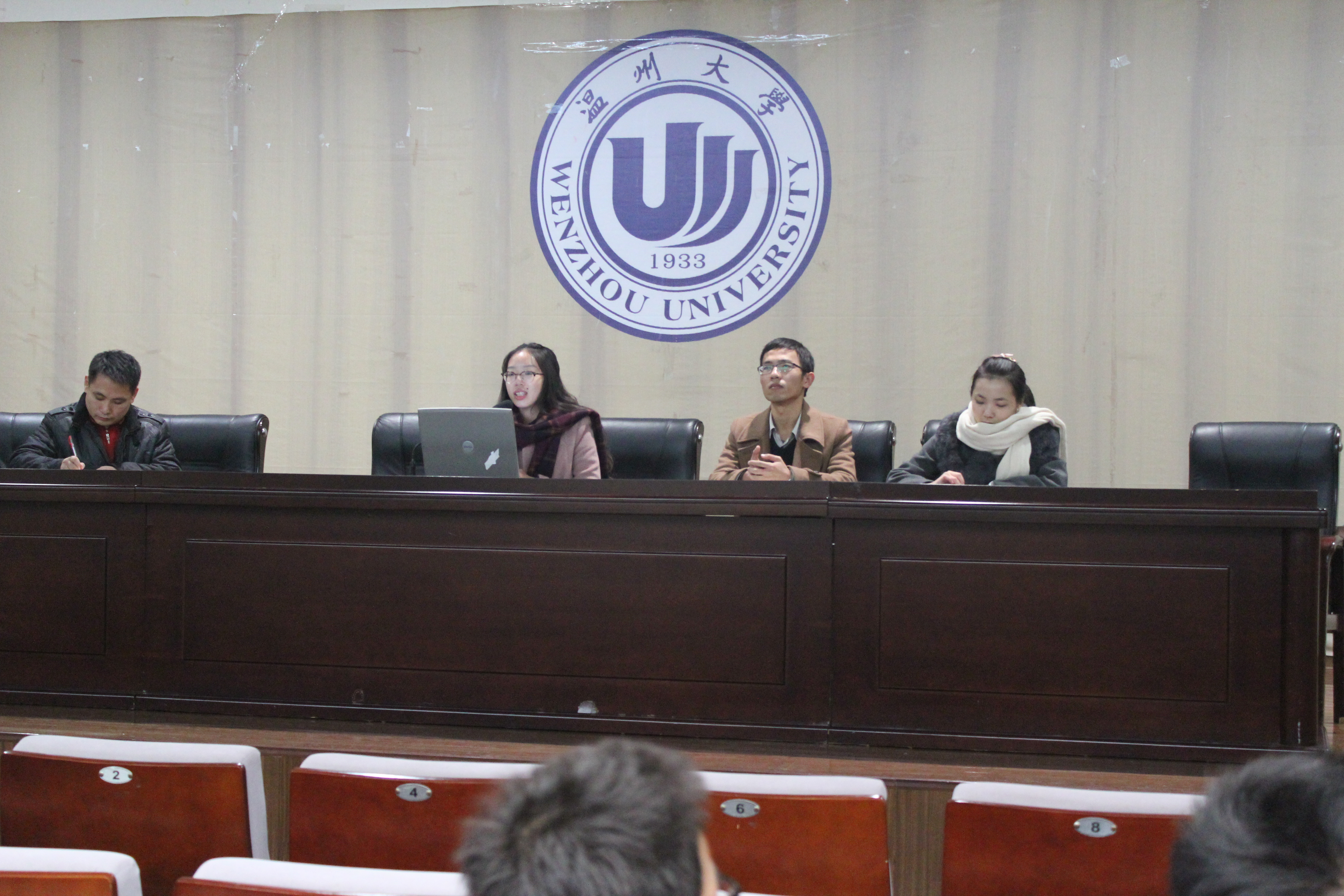 华坤学长目前已经被宁波市教育局录取为正式编制教师,所以,今天晚上他的汇报会轻松幽默,娓娓道来。华坤的报告围绕教学工作和班主任工作。他细致地讲解了做班主任工作要有爱心、奉献心、责任心、宽容心、要具有管理能力、组织能力和交流能力。教学工作要经过备课、试讲、修改、上课等层层把关才能走上三尺讲台。