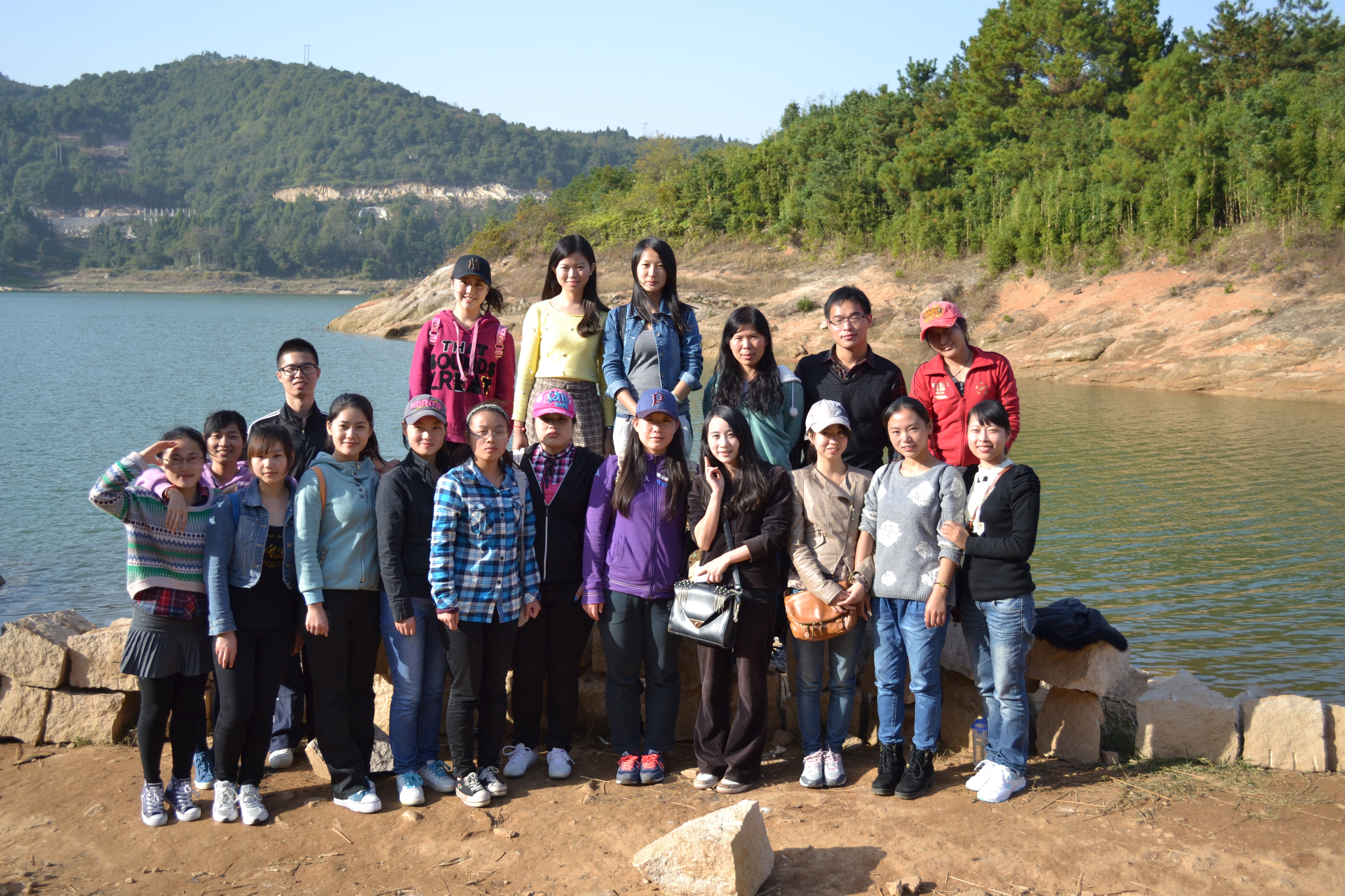 生活E区集合并一起出发,目的地是大罗山秀垟水库。登山队伍选茶山镇上的一处入口上山,经过洪岩殿到达罗丰古村落,在这里出现了三岔路,好奇心驱使我们选择了其中新修建的一条山路,经过长途跋涉,这条路恰好与通往秀垟水库的另一条山路重合,原来路都是相通相连的。在上午11:30到达目的地,眼前的秀垟水库美景使旅途劳累一扫而空。接下来是我们另一项重要的活动——烧烤,生火,支锅,准备食材,在大家齐心协力下,我们吃到了香喷喷的美食。在享受自然风光和美食的同时,我们同样不忘爱护环境,在活动结束后,我们清理所有垃圾并带到山下。
