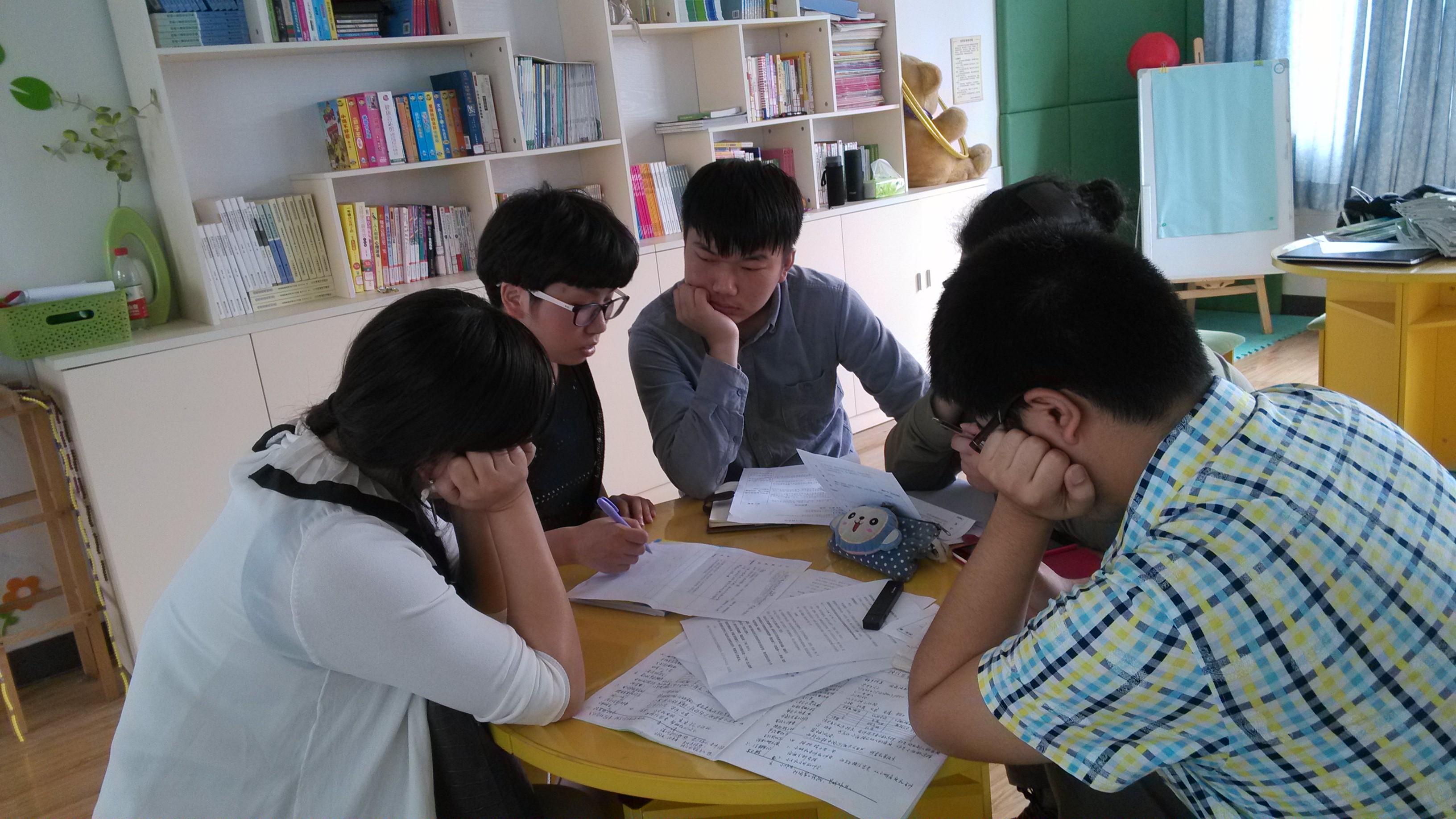 实习进入第五周,四位实习生都已经对日常的班级管理十分熟稔,可以独当一面了。无论是班级的日常管理,还是班级突发事件的处理,我们都可以做到不心慌,不盲目,采取适当的方法应对。在作为班主任管理班级的同时,我们也不忘抓紧练习我们的教学技能,磨练我们的课感。本周每个人都有两到三节课,有学科课也有心育课。课前我们精心准备,课中我们全心投入,课后我们积极与指导老师交流。每一位实习生上课,其余的实习生和老师都会去听课,帮助他发现问题。在课后的评课中,每个人都各抒己见,在各位老师和同学的帮助下不断改进自己的上课思路和课程设计,让人感觉获益匪浅。