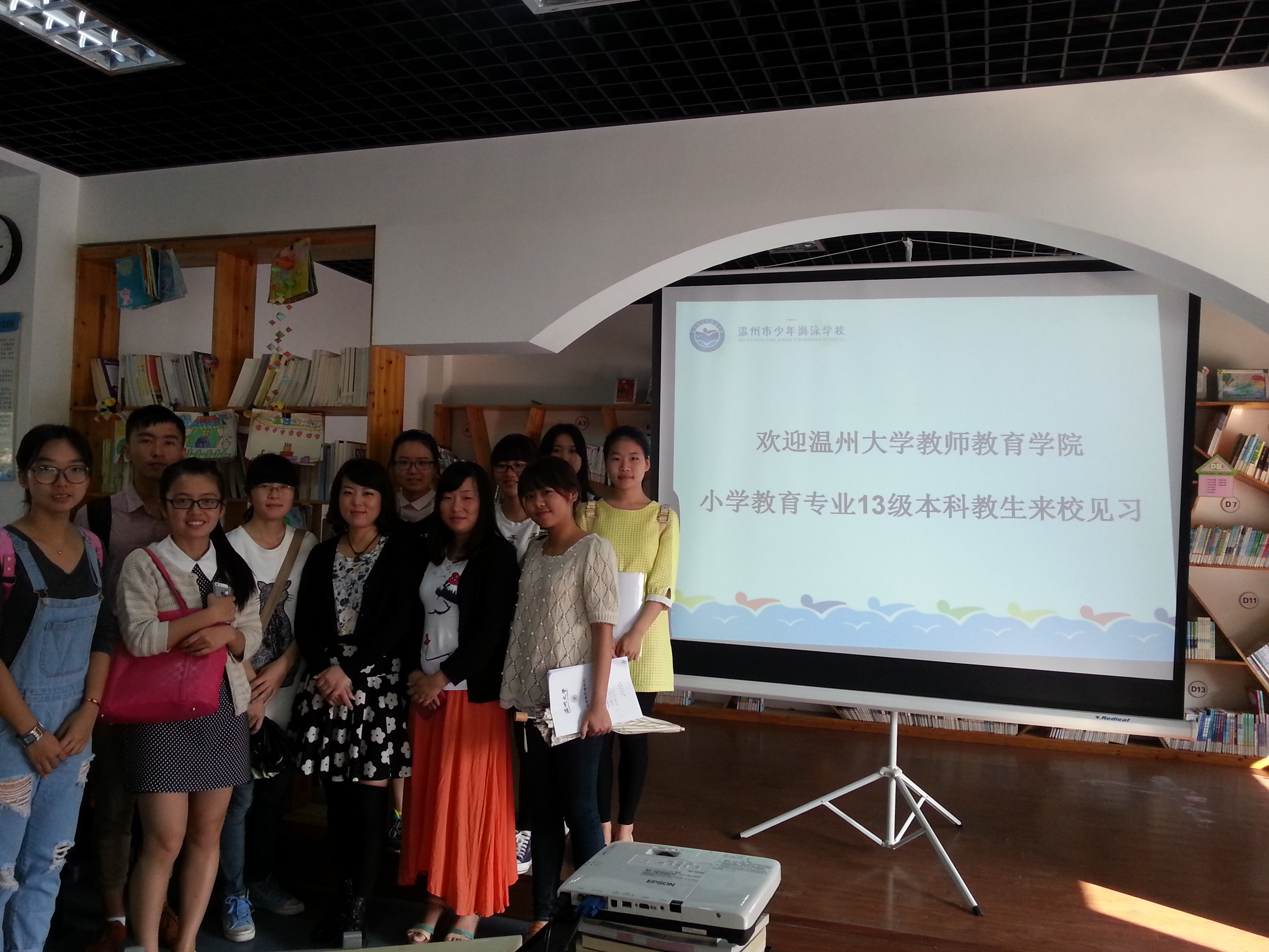 13小学教育的同学们来到了温州少年游泳学校进行本学期的见习活动。少泳学校的老师们为初次到来见习的同学们召开了热烈的欢迎会。此次学院的带队老师周鹤新,少泳学校的副校长林老师及其他老师参加了此次欢迎会,见习的所有同学们与会。