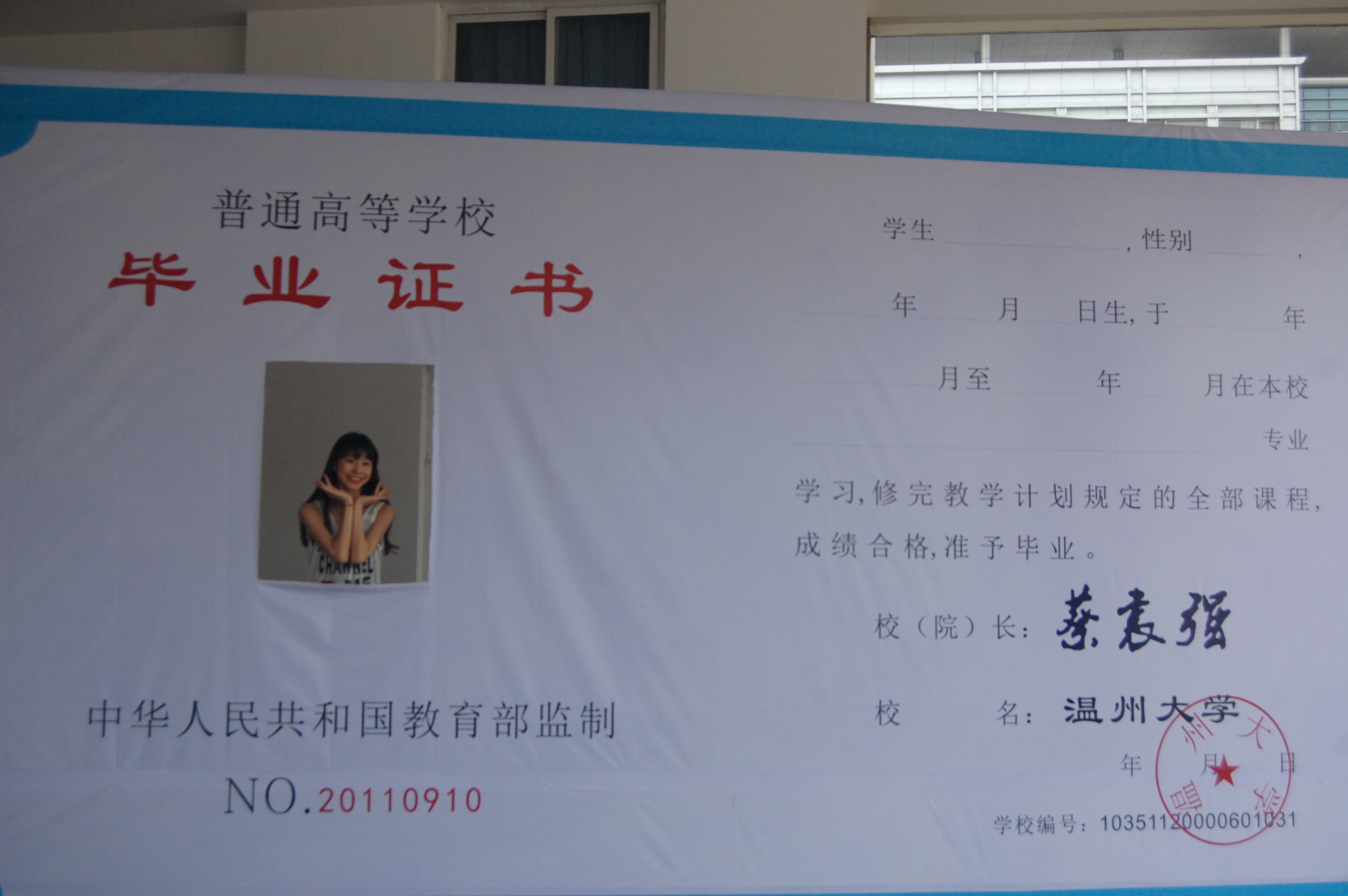 毕业证书喷绘,同学们以一张张“真人版”的毕业证书定格毕业的美好瞬间;台阶左侧,一张由教师p站视频