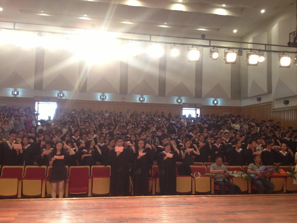典礼上,蔡袁强校长与每位毕业生深情握手,亲手为395位毕业生正冠拨苏、颁发毕业证书并合影留念,整个会场气氛热烈,整整持续了2个多小时,许多毕业生激动深情地拥抱校长以示喜悦,大家深深感动,一起向着校长深情喊道:“蔡校长,您辛苦了!我们永远爱您,爱母校!”喊出了所有毕业生的爱校心声。