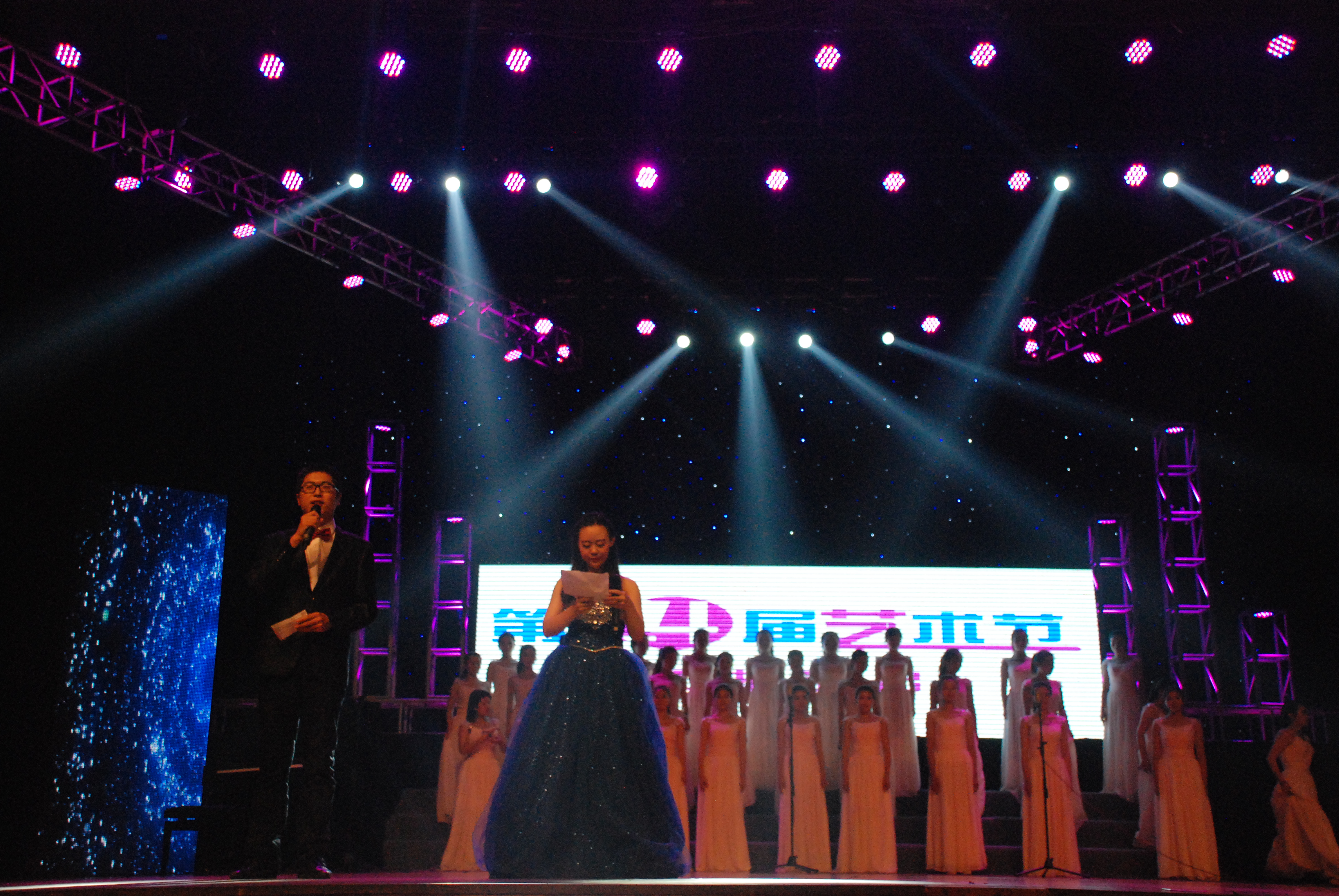 开场时,我院健美操队以一场热辣的健美操为本次汇报演出拉开了序幕,主持人在简单的介绍后,就开始了本次表演。这次的节目都是从本届“艺术之春”的比赛中脱颖而出的优秀表演,群舞、合唱、重奏、朗诵、儿童剧等,各种形式的节目应接不暇,场下的观众也保持着高涨的热情为台上的表演者们加油。