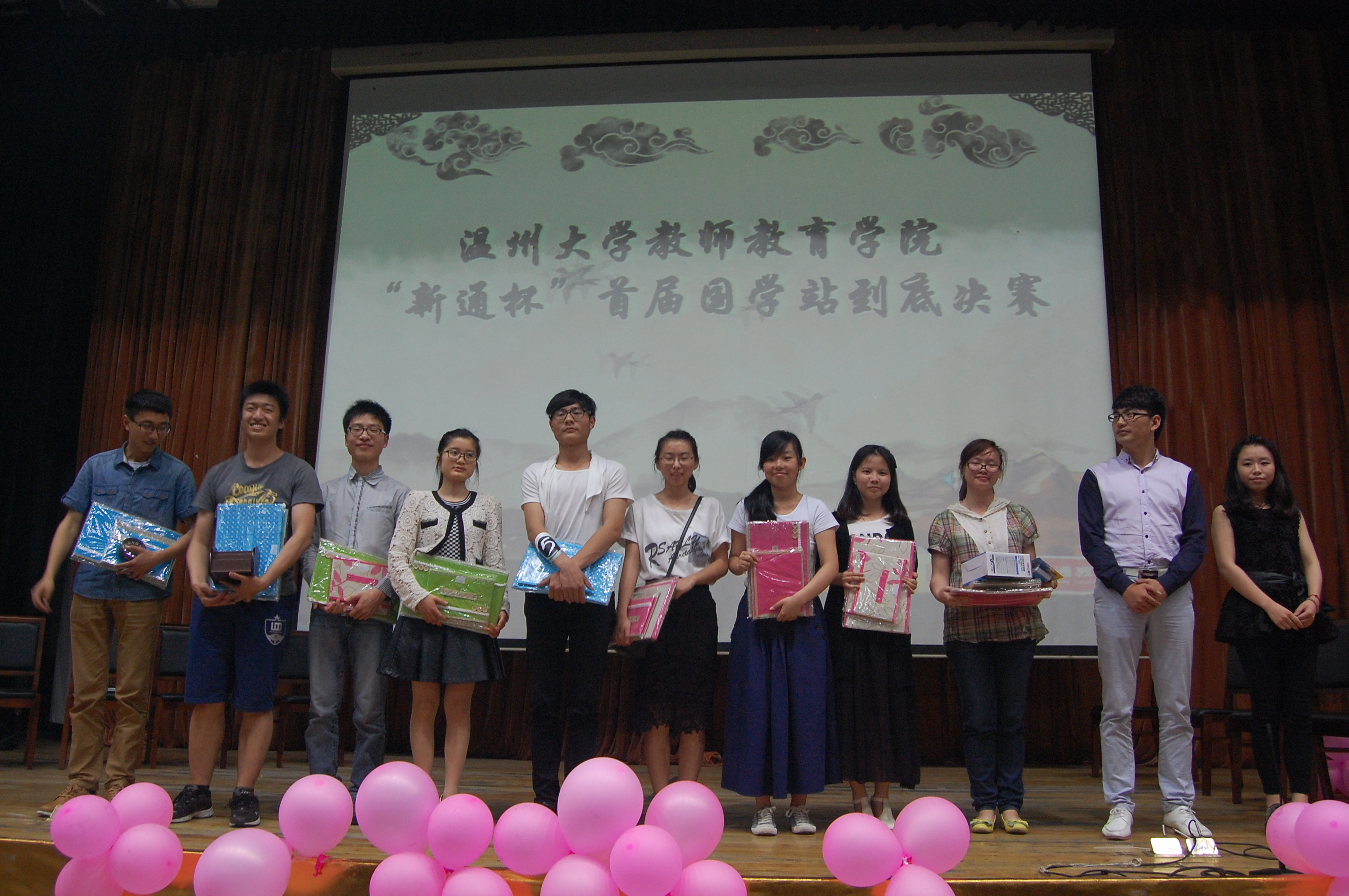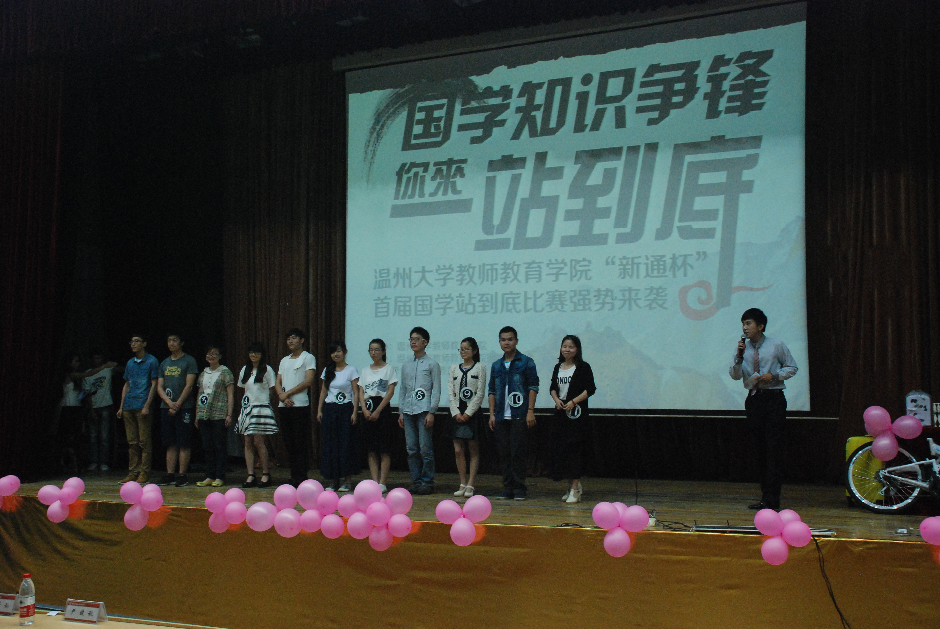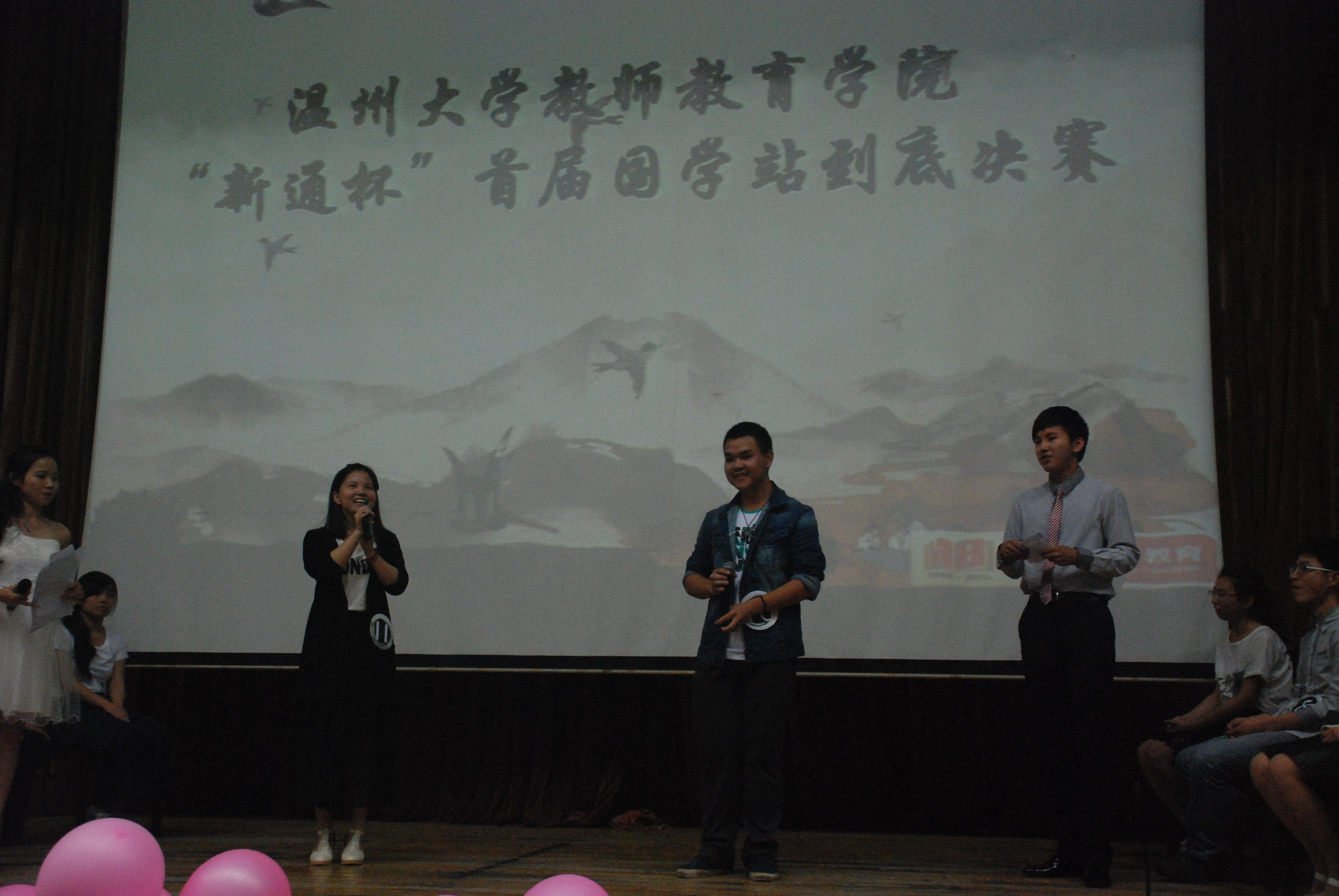 在南校9号楼报告厅举行“新通杯”首届国学站到底决赛,入选的11位选手将进行终极pk。本次比赛分为三个环节,分别是选手攻擂、观众抽奖和终极大奖。