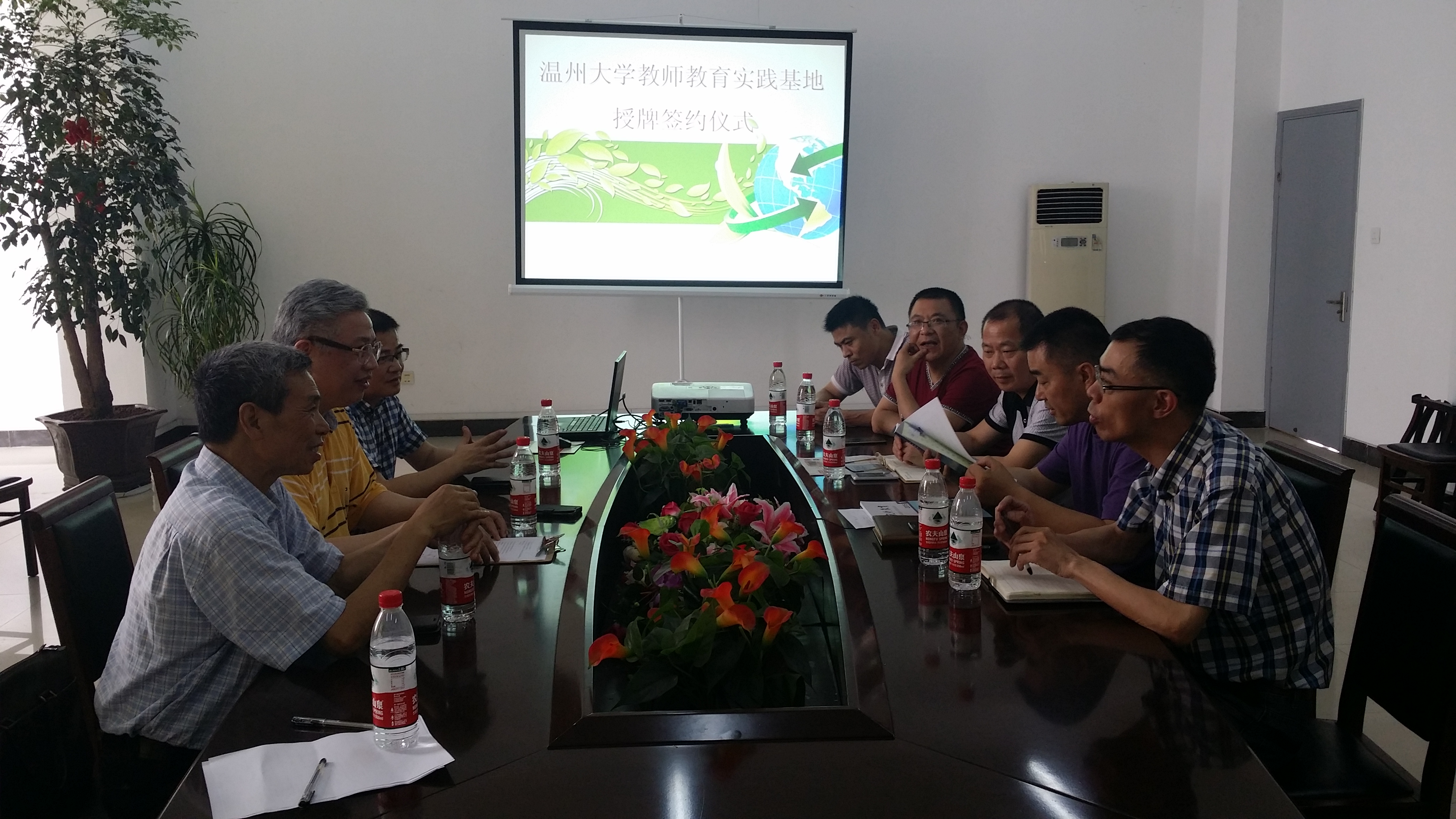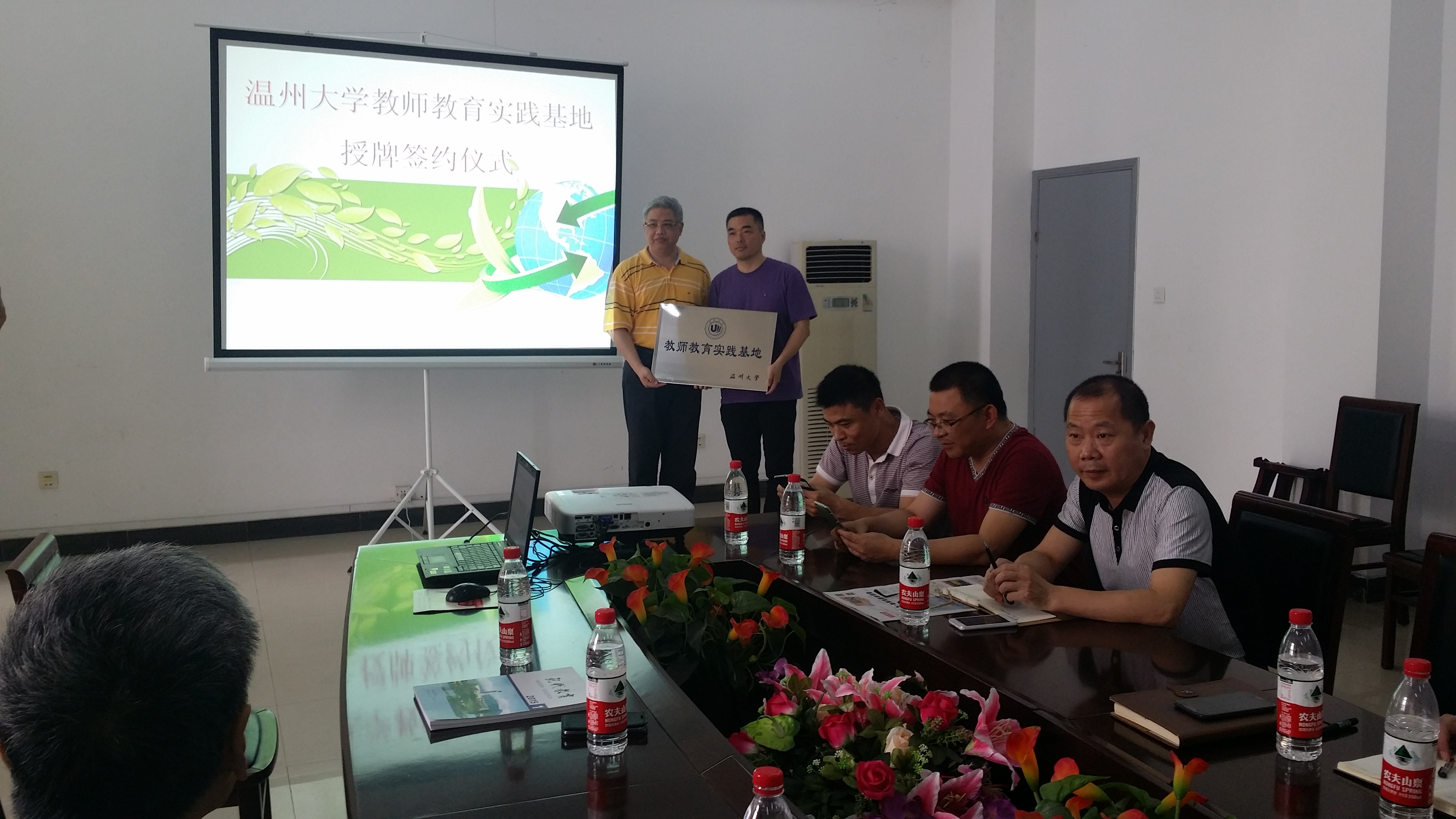 随后,潘院长一行来到瑞安市外国语学校,在该校林弢校长的主持下,举行了“p站视频 教师教育实践基地授牌签约仪式”。双方真诚表达了合作的意愿和方向,潘院长就协议详细解读了在哪些领域双方可以合作。仪式之后,潘院长与实习生做了会谈,了解实习情况,并下学生寝室,了解生活情况。