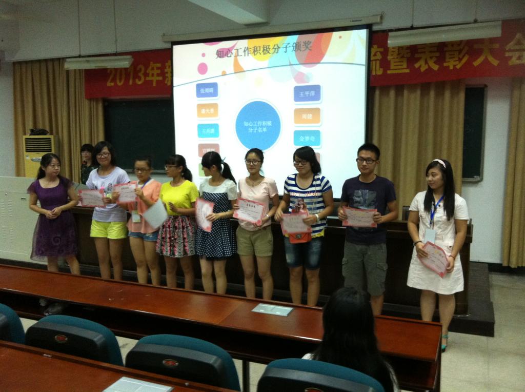 2013年9月11日晚,“知心姐姐”工作交流暨表彰大会在我院3号楼101教室举行。全体新老“知心姐姐”队员参加会议,嵇小怡副书记出席会议。