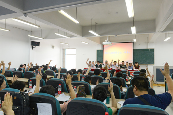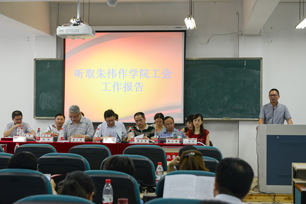 经过紧锣密鼓的筹备,我院于2016年7月7日上午在南校区教育楼C301大教室隆重召开三届一次教职工暨工会会员大会。大会主要议程包括听取并审议学院工会工作报告、审议通过《p站视频 教师p站视频 “十三五”发展规划草案》、投票表决《p站视频 教师p站视频 津贴分配方案补充条例(试行)》(草案)、选举产生学院第三届工会委员会委员等。大会预备会确定了郑信军、杨立淮、潘玉进、彭小明、胡瑜、杨丽君、朱伟、折延东、颜文靖、李梁、陈旭微、黄玮、叶新东等大会主席团成员,并在主席台就座。杨立淮书记主持大会。