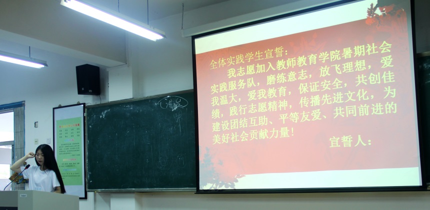 党总支书记杨立淮老师、党总支副书记杨丽君老师、各支实践队指导老师以及全院参加暑期社会实践的学生出席了本次出征仪式。会议由学生科林萍老师主持。