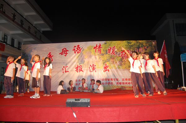 中午1200开始,各位工作人员们一致到位,着手布置汇报演出的现场。学校教学楼前,工作人员们搭建舞台、调配音乐与话筒之后,开始彩排工作。低年级与提高班教室里各位演出人员有秩序地集中,队员们给他们进行最后的精神鼓励工作;中年级教室里,负责化妆的队员们按照节目顺序给学生们进行化妆与着装;后勤队员们不断忙碌,布置着观众席与嘉宾席。所有的队员在忙碌的同时不忘互提意见,进一步发现问题,以使得今晚的演出能够更加顺利。时间在忙碌时总是过得很快,不知不觉就到了1830,各位领导入座,演出正式开始。在主持人说辞完毕,各位代表发言完毕之后,也就进入了今天的高潮。一个一个精彩的节目缤纷呈现,观众们掌声不断,尖叫声不断,孩子们个个变身为美丽的天使,脸上挂着真正属于他们的天真笑容。舞台上,歌唱、舞蹈、小品、相声、合唱、朗诵……各种节目应有尽有,异彩纷呈,给这个美丽的枫岭更是注入了一股新的活力。在互动环节,孩子们与家长心有灵犀,赢走一个又一个的奖品,感受亲情的可贵与魅力。