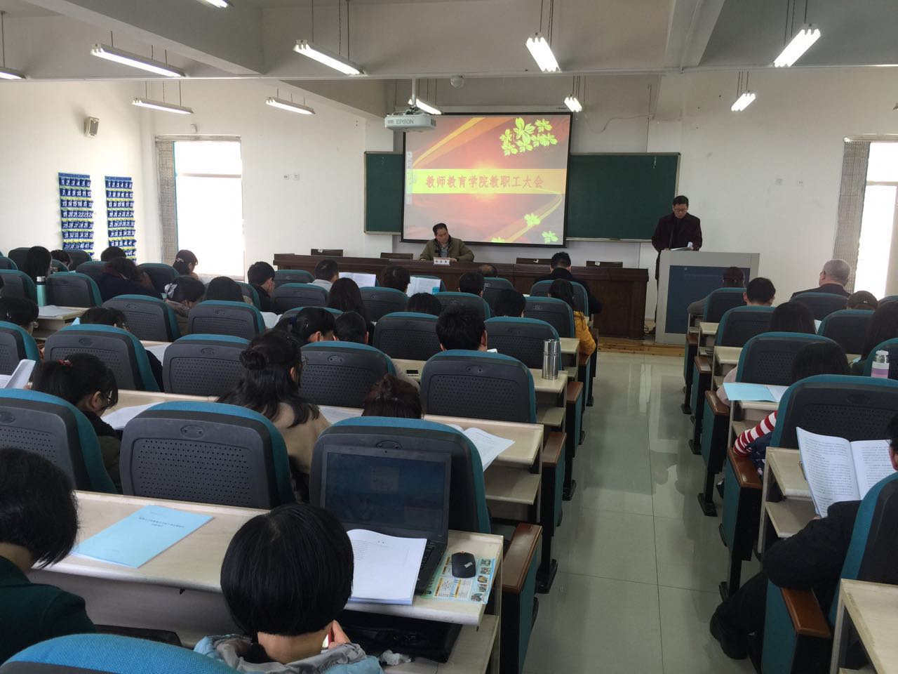 315日下午,我院召开全院教职工大会暨学院干部任期届中考核述职大会。会议在南校区9C301教室召开,全院教职工参加了会议。会议由杨立淮书记主持。学校党委组织部胡保永同志到会指导并作测评。