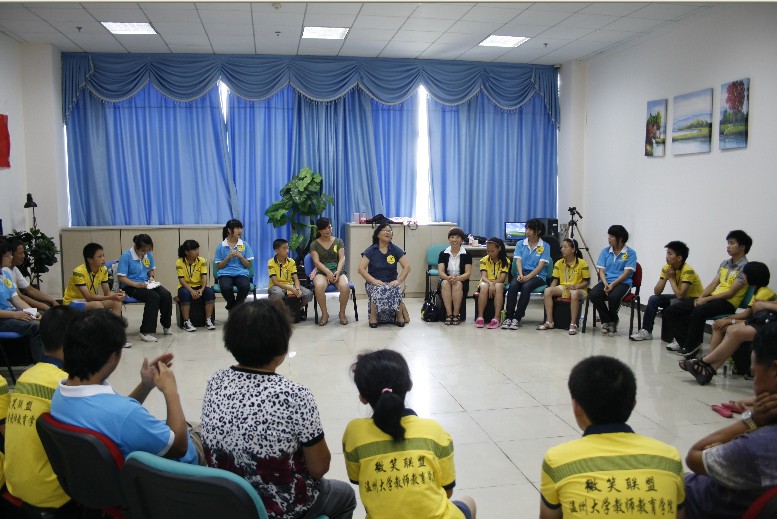 7月11日下午,章毓光和张海音老师给参加夏令营的小营员及家长们开展亲子团体辅导。