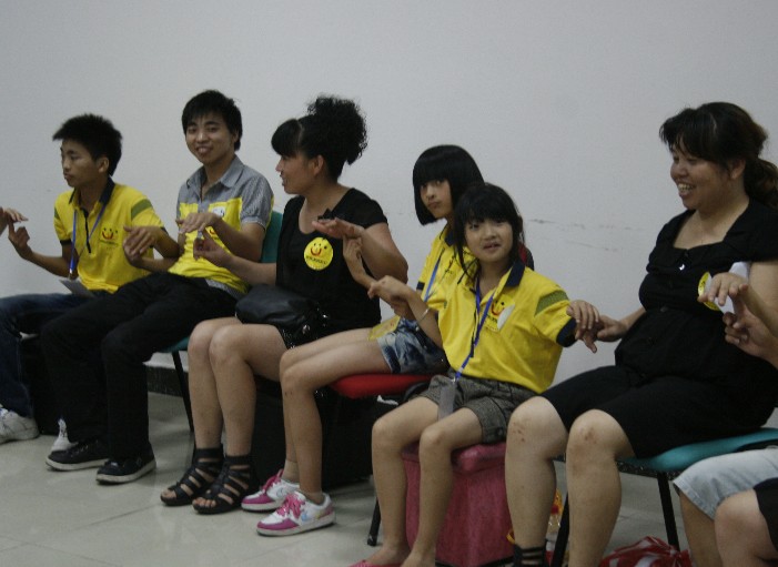 本次亲子团体辅导主要分为三个部分。第一个是亲子拉手,通过亲子之间的拉手,增进了亲子之间的情谊,让他们感到自己不是孤单一个人。章老师分析了人和人之间的沟通就是人际交往。“人”,就是相互支持的,手语中的“家”,就是由很多“人”组成的。由此可见,家庭对一个人的重要性。第二个小游戏,考验亲子间的默契程度。章乐燕小朋友和她的妈妈参加了这个游戏,在游戏的过程中,每个人都认真地思考:我了解吗?我知道吗?通过这个游戏,家长们明白了解是良好沟通的前提。第三个游戏是让家长与小营员回忆发生在他们之间让人记忆犹新的冲突。这个环节告诉家长们,亲子之间发生冲突的时候千万不要记住孩子话中带有的恶意,要去关注实事求是的部分,要学会换位思考。孩子有错的时候就要惩罚他们,惩罚其实也是一种教育,但是惩罚之后要对他们进行抚慰。这样,既能起到惩罚的效果,又不会造成亲子关系的疏远。最后,张海音老师带领营员和家长做了两个小游戏——“暴风雨”和“你追我赶”。在游戏中小营员与家长们愉快地结束了下午的活动。