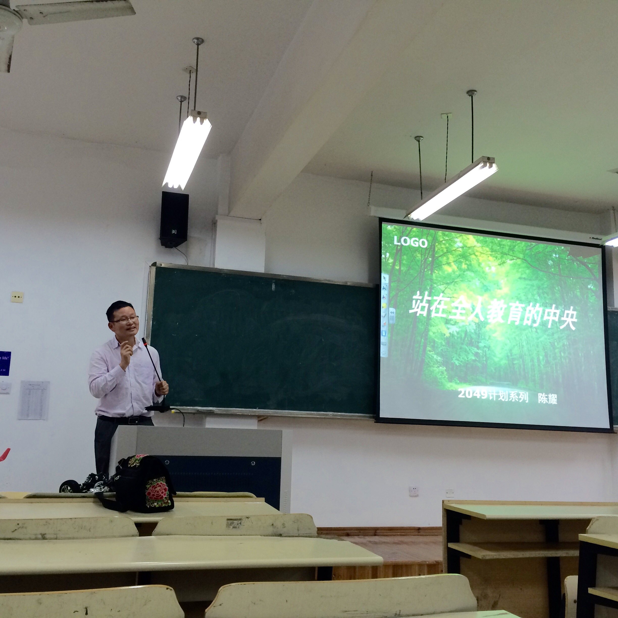 全国模范教师,,陈耀老师,同时陈耀老师也是家庭试验室计划的创始人,苹果树之友科学公益组织创始人。小学教育专业各方向的大三学生积极参与了这次的名师大讲堂。
