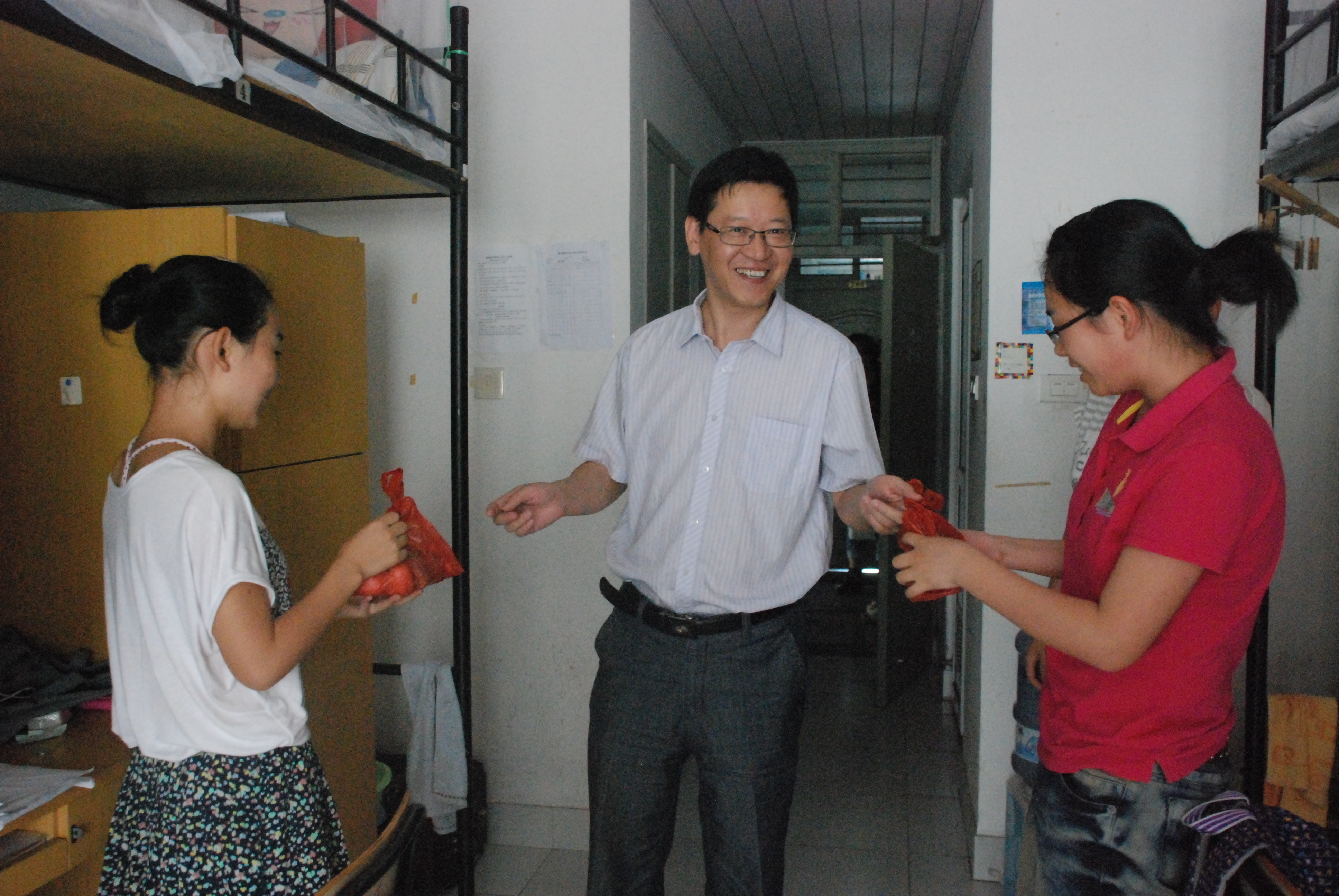 中午时刻,郑信军院长、蔡联群书记、孙芙蓉副院长、彭小明副院长、嵇小怡副书记、各班班主任和辅导员把香味十足的粽子和鸭蛋亲手送到同学们手中。同学们拿着粽子心里乐滋滋地笑开了花说:“这既是端午节的礼物也是期末考试的幸运之星”。走访寝室送粽子和鸭蛋的领导和老师在祝同学们节日快乐的同时也祝他们暑假快乐,并叮咛回家路上一定要注意安全,到家后要向班主任报平安,假期中通过向书本学习、向实践学习、向社会学习不断充实自己的生活沉淀内涵。