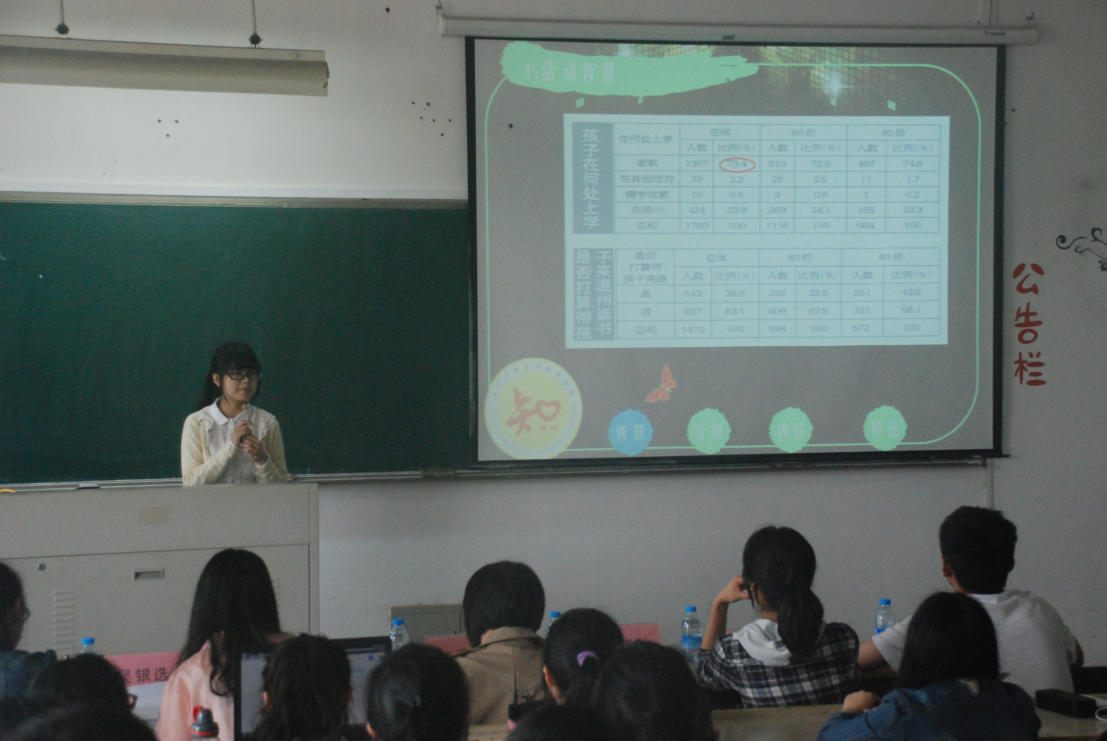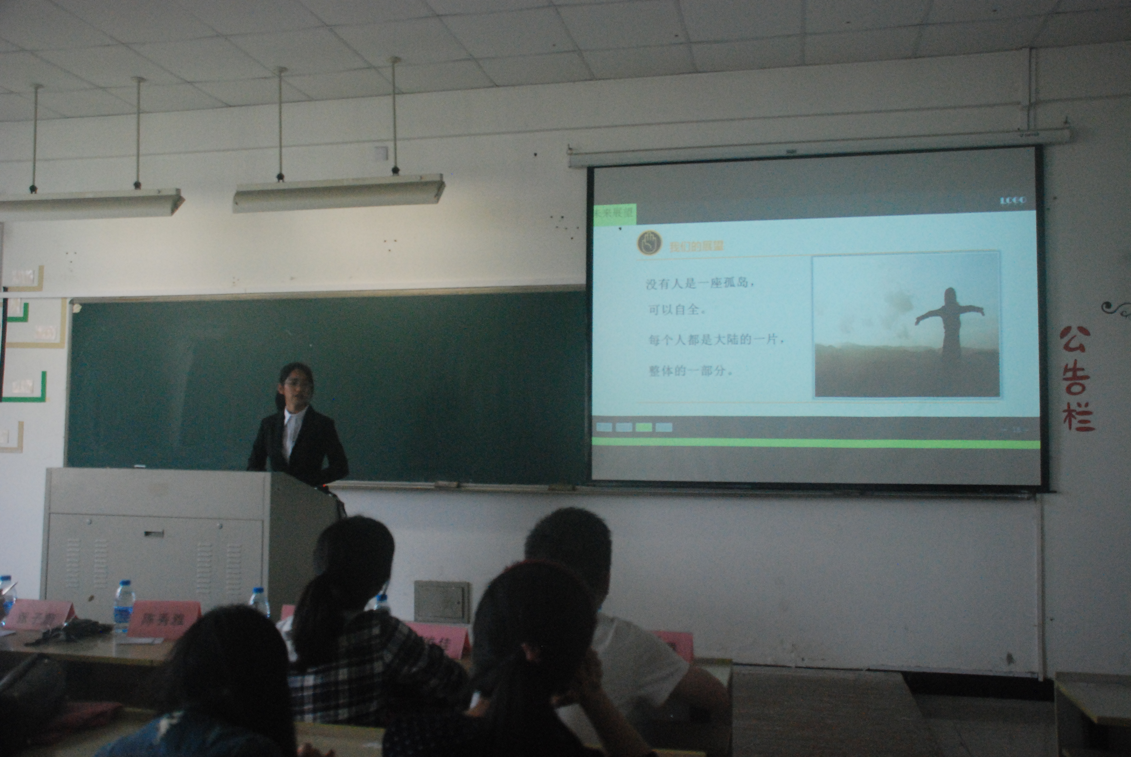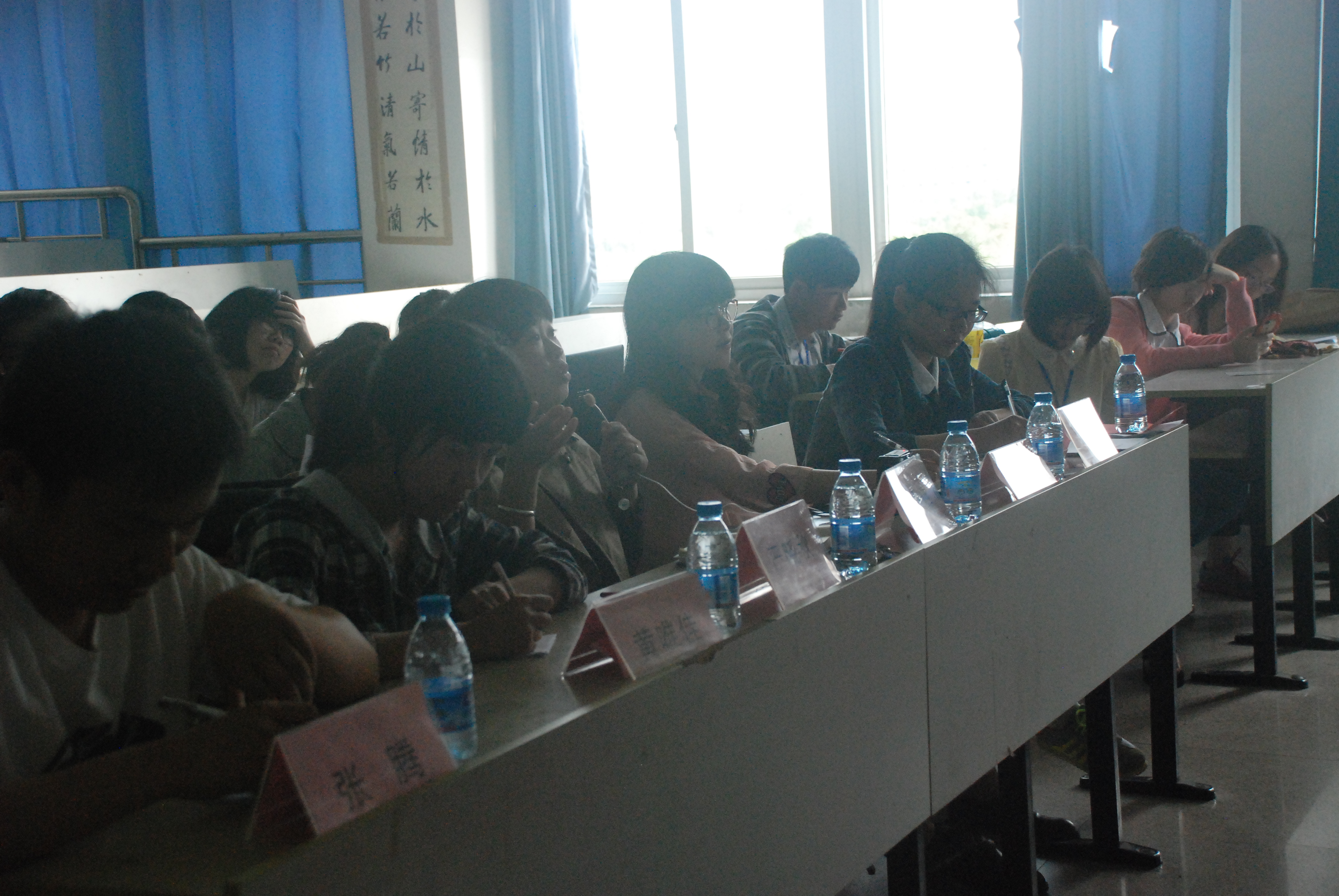 北校3-301正式开始,我院辅导员陈秀雅老师,严晓秋老师,优秀学生张子蔚,张腾,黄唯佳以及十二支参赛队伍的代表们到场参加。本次的评分制度很简单,排名的分数中演讲者的表现分占40%,小组策划的内容占60%。