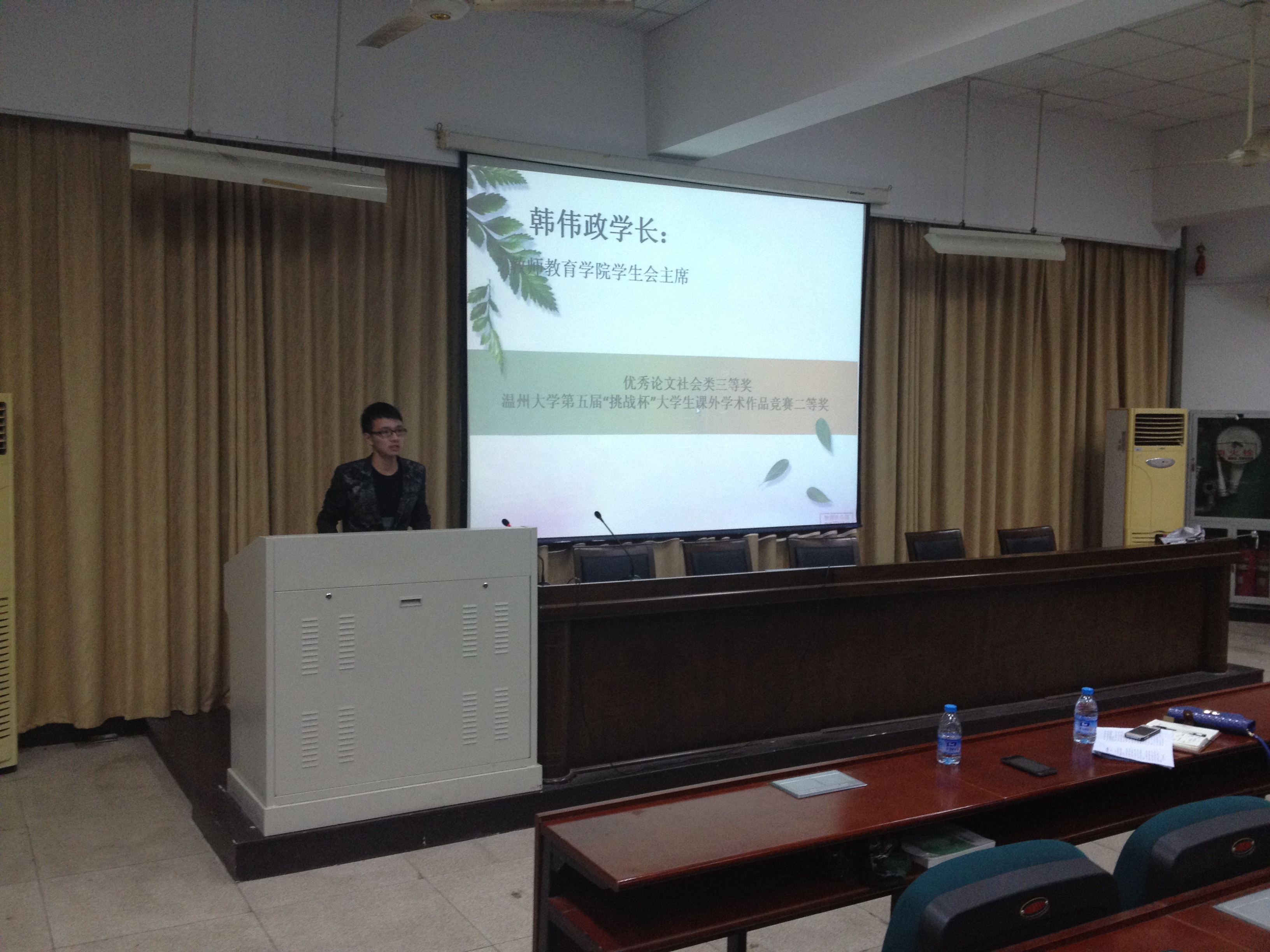 交流会开始,张翼鹏学长向大家介绍了什么是“挑战杯”,怎么参加“挑战杯”,还和大家分享了自己参加“挑战杯”的收获。他的详细介绍为大家打开了未知的 “挑战杯”大门。接着,我院的两位学长也将自己的经验倾囊相授,从选题、团队组建,再到论文的一些步骤都一一分享。高崚峰学长着重向大家推荐了一些学术科研的资料网站和选题方面的一些建议。韩伟政学长则以自己的而经历为例,强调科研与自己专业学科结合的重要性,科研可以帮助大家对自己所学专业知识形成一个全新而又深刻的认识。现场学长与学员的互动,有问有答,讨论气氛热烈。晓秋老师也分享了她赴苏州进行第十三届全国大学生 “挑战杯”科技作品竞赛决赛观摩学习的经历,和大家分享了一些值得大家借鉴学习的案例,总结了这次的交流会。