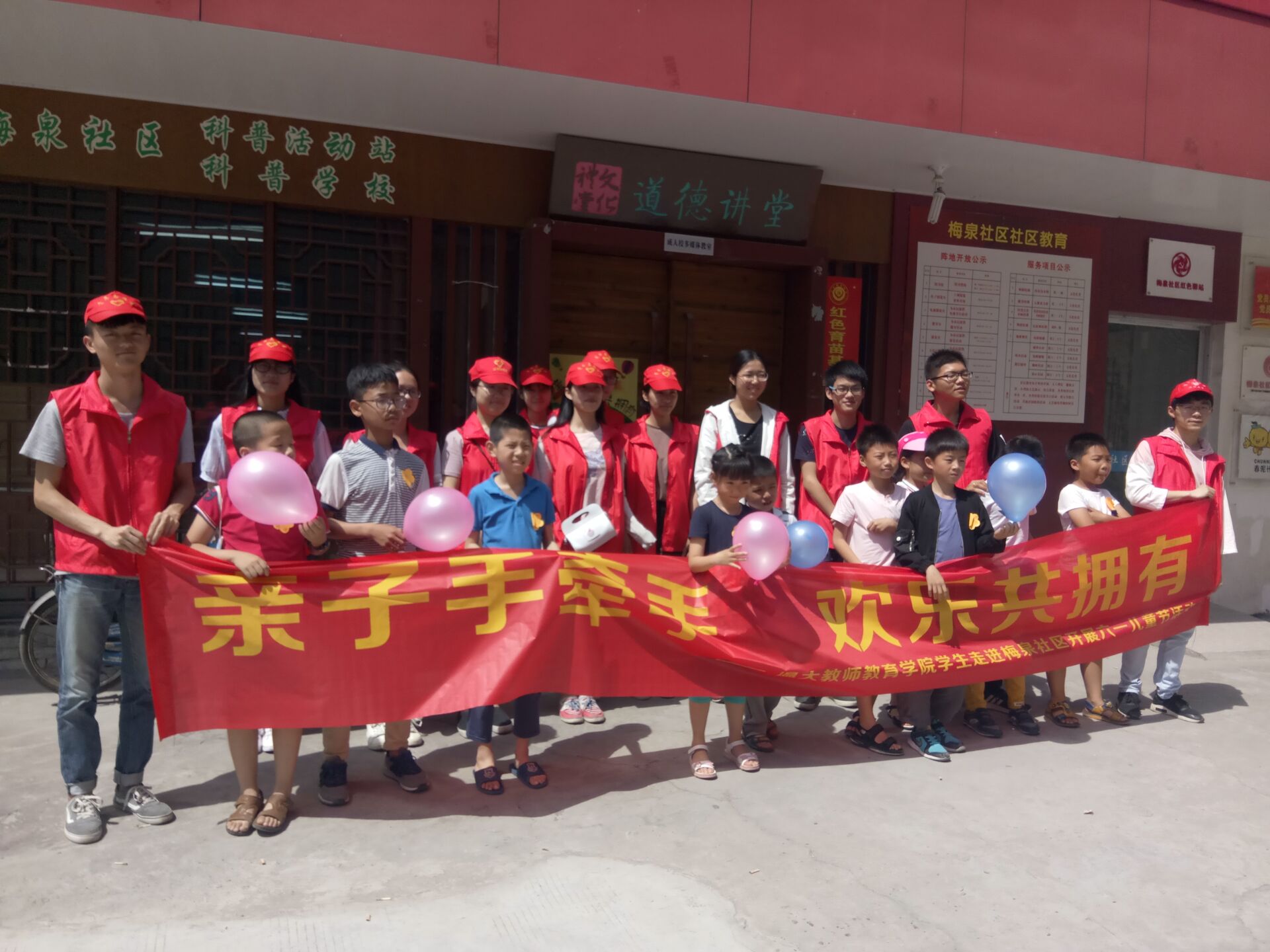 2017年5月28日上午,我们教师p站视频 青年志愿者协会的小伙伴以及10名志愿者在梅泉社区开展了六一亲子活动。本次活动的主题是:“亲子手牵手 欢乐共拥有”,旨在通过孩子与父母的互动来加强与父母的感情。