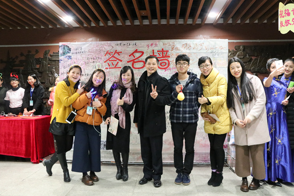 拉开帷幕,两只吉祥物探头戏耍,摇摇摆摆地晃悠几下,带出了一段开场热舞,活跃的气氛瞬间弥漫了全场。郑信军院长首先致辞,对教院在过去一年里取得辉煌成果表示祝贺,对教院的师生表达了美好的祝愿。在讲话过程中,院长特别指出2016年教院学生自觉培养师范气质、追逐教育梦想,取得非常喜人的成绩。星光灿烂,彩灯辉煌,各类表彰和各个节目闪亮登场。