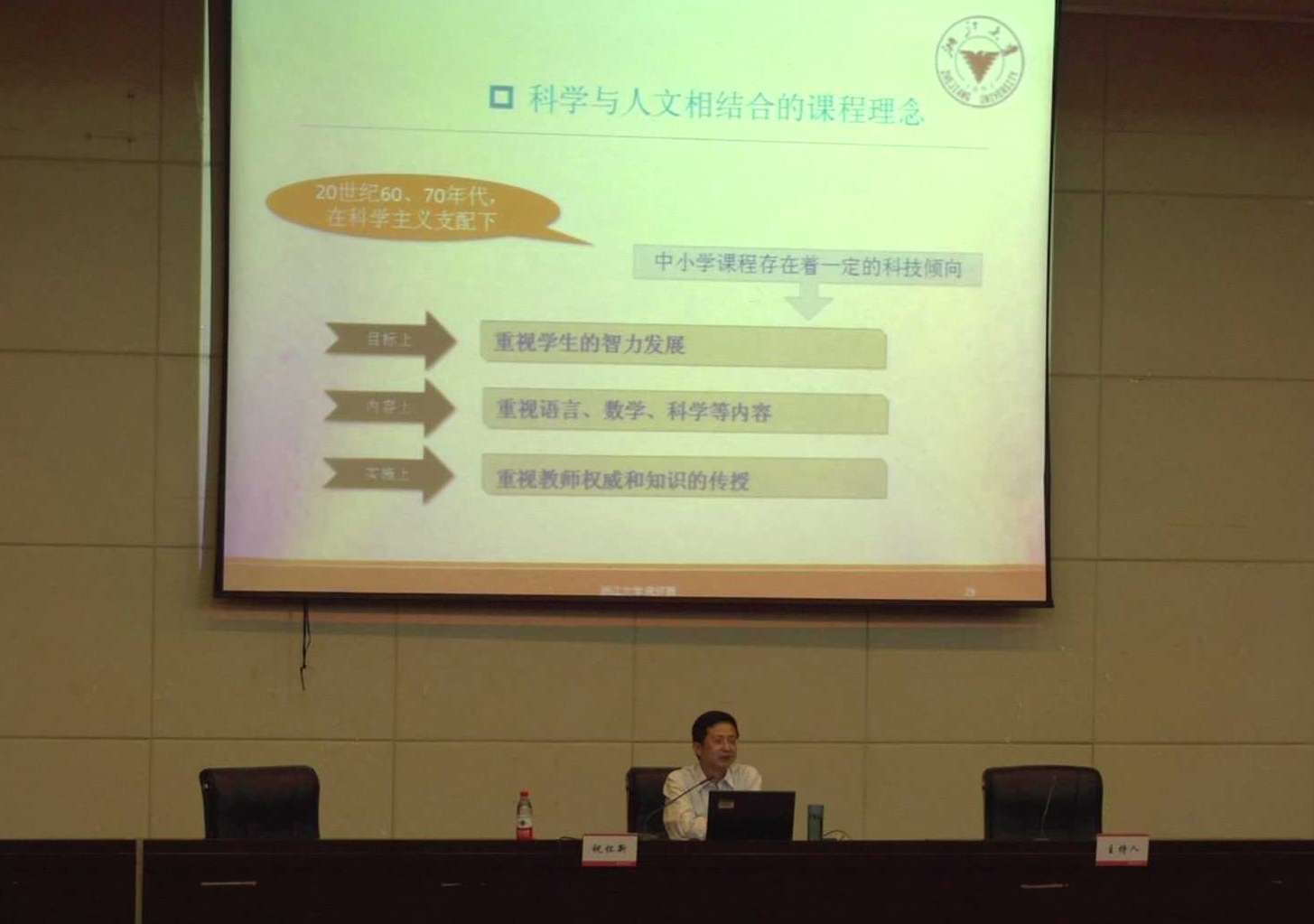 2016年5月4日下午,浙江大学祝怀新教授在育英图书馆二楼报告厅为学校师范类专业师生作题为“欧美基础教育的改革与发展”的专题报告。祝教授从当代基础教育的发展背景谈起,用比较教育的视角为大家简要讲述了美国国家教育目标和我国国家教育事业发展十二五规划,深入阐述了以皮亚杰的认知发展观为主要代表的建构主义理论及其对当代基础教育产生的深远影响。比较全面地介绍了在建构主义理论指导下形成的全人教育课程价值取向、科学与人文相结合的课程理念、回归生活的学生课程生态观等基础教育课程的基本理念,以及在此基础上形成的多模式、整合化的基础教育课程模式,强调了培养会思考的公民和有能力的劳动者是基础教育的重要目标。祝教授用渊博的知识、开阔的视野、比较的方法和深刻的见解,为大家深入浅出地介绍了欧美基础教育改革与发展的理论与实践,为教育专业的师生带来一场国际化的专业理论营养大餐。之后与师生的互动交流也十分活跃精彩,让师生开阔视野、受益良多。