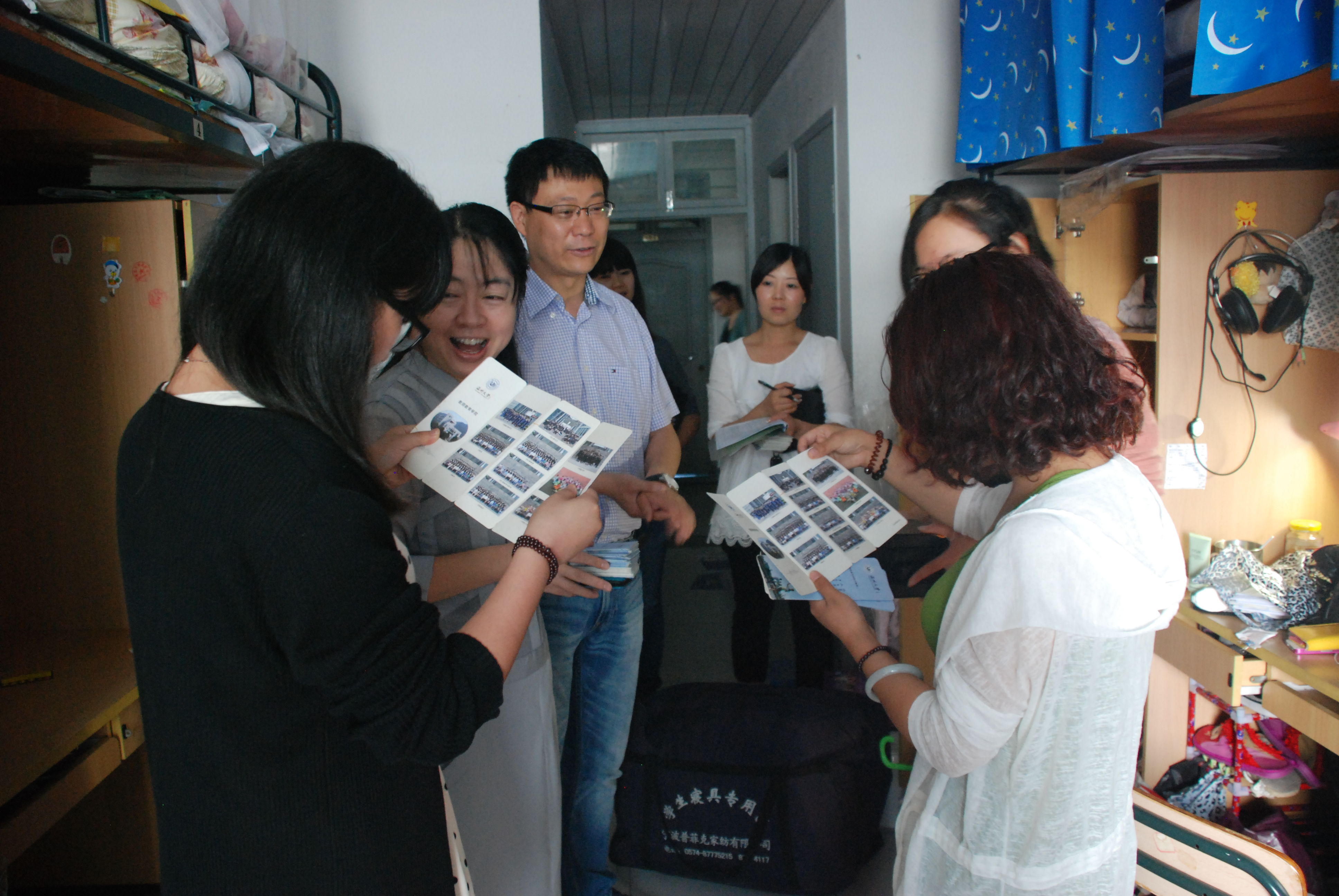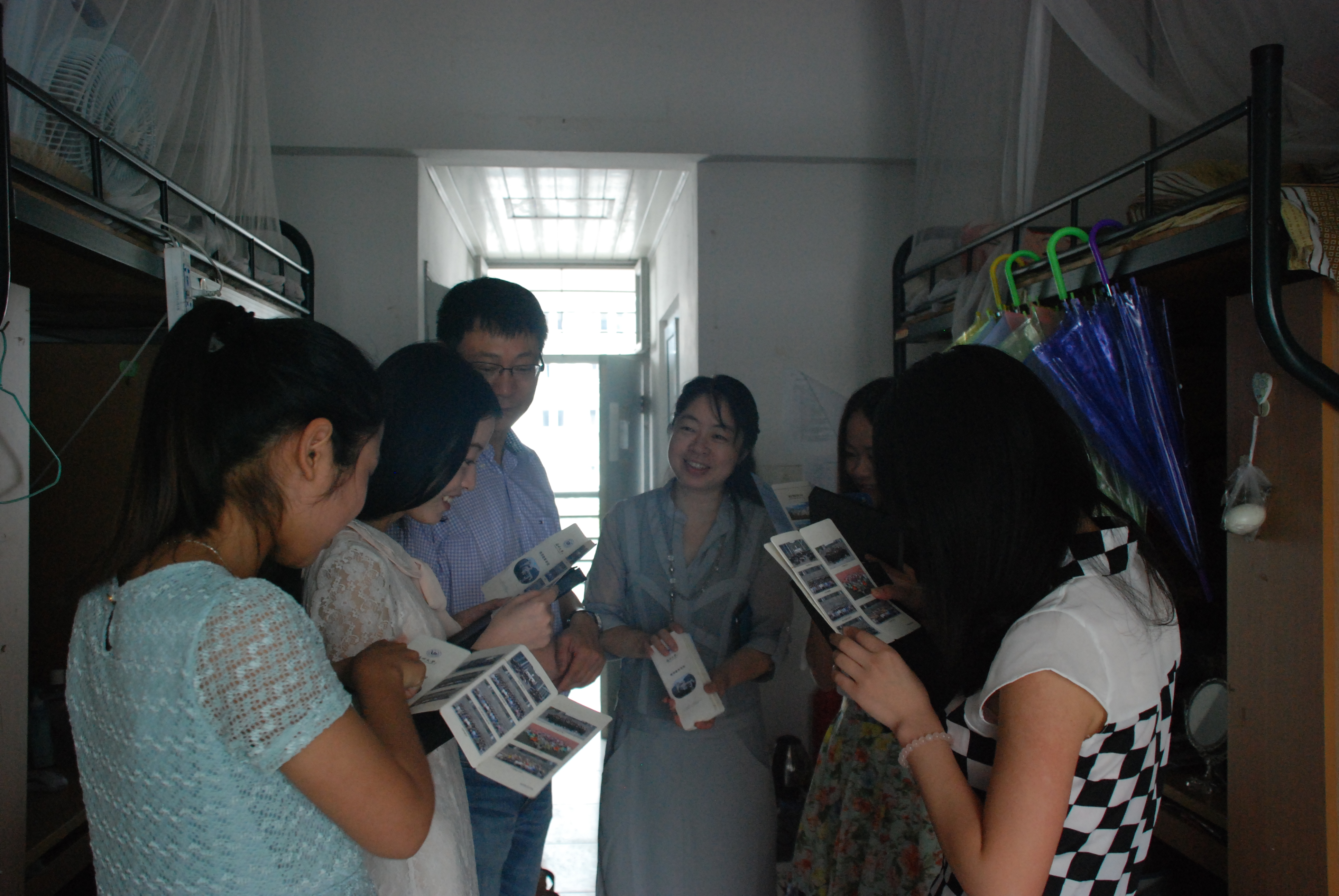在2013届毕业典礼后的第一个早晨,院党委书记蔡联群、副书记嵇小怡以及辅导员老师和在校同学们来到了毕业生的寝室,跟毕业生们一一送别,并赠送了有院长赠言的精美的书签和相册,共走访了80余个寝室,探访了近350名学生。