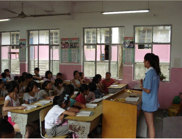 7月10,我们迎来了实践队的第一天的活动。我的教学任务就是帮四、五年级的学生辅导英语暑假作业。当我走上讲台,面对40多位学生的眼神,是第一次。真的很紧张。但是这一天的感受却是不能单用“紧张”二字所能概括的。