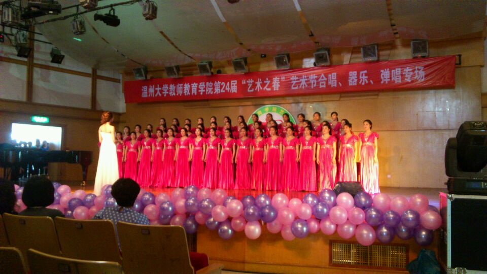北校音乐厅正式拉开了帷幕。我院学生们踊跃参加比赛,我院温州中等职业技术学院学部的老师和同学也观摩了本次大赛精彩赛事。陈恩清、金晓丹、陶陶、章伟丹、杨婧等老师出席并担任评委。 艺术之春合唱、器乐、弹唱专场当中,同学们精彩的演出让师生们纷纷拍手称赞。在合唱比赛环节,由13大专2班带来的合唱曲《Rolling in the Deep》,节奏轻快,活泼动感;12学前本科班合唱的瑶族民歌《腰鼓乐曲》,优雅独特,在钢琴与鼓的伴奏下,静动张弛有度,吹来了一股清新的民族风。在器乐比赛环节,12学前本科班和13小教数学班的两位同学不约而同都演绎了钢琴曲《梦中的婚礼》,手指的灵活跳跃,急促与舒缓的巧妙结合,梦中和现实的落差,淡淡的忧愁与淡淡的喜悦,梦幻十足。弹唱部分,13大专3班的《种太阳》,热情欢快,振奋人心;《红心闪闪》则把听众带回了解放时代,激昂人生。台上一出出精彩的演出,台下一阵阵热烈的掌声。 我院同学们扎实的琴艺和高超的唱功,带给观众们不时的惊喜。俗话说,万事开头难,本次专场比赛良好的开头也预示着本届艺术节的成功,相信在接下来各个专场比赛中,会有更多意想不到的精彩表演,让我们拭目以待吧! (通讯员:卢晓青)