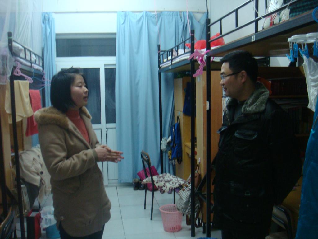 “路上辛苦吗?”,“天气冷,记得多穿衣服……”一句句暖人心扉的话语感动着我院返校学子的心。胡来林院长走访了C区1号楼公寓,细心地询问了同学们的专业学习情况,对大一学生关心的转专业、双专业等问题,做了详细解答。 蔡联群书记走访了男生宿舍,当他看到寝室有床铺空着时,都会向同学询问该同学未到的原因等,高度关注学生返校安全。走访过程中,学生党员们纷纷向蔡书记和随同辅导员津津乐道自己在假期开展的社会角色体验活动。 潘玉进副院长在学生科 郑信军副院长在走访过程中与同学们展开亲切交流,就大家所关心的课程设置、课题申报等问题给予详细解答。 彭小明副院长主要对毕业班同学关心的教师编制考试、毕业论文、应聘技巧等问题提出了自己的建议,并对毕业生提出了殷切的期望。 嵇小怡副书记走访看望了学前大专学生公寓,她希望每个同学都能珍惜时间,努力学习专业知识,并叮嘱将要实习的同学,在校外一定要注意安全。 师生交流过程中的暖心问候和欢声笑语打消了同学们遥远路途奔波的倦意,同时也拉近了师生距离,为我院进一步落实惠生工程,创建和谐学院营造良好氛围。
