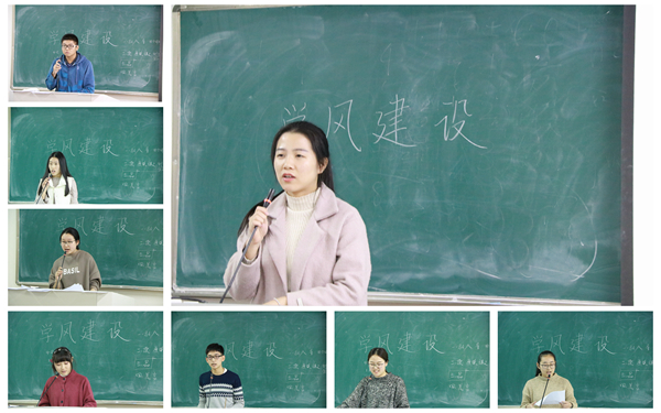 撰写完毕后,同学们陆陆续续回到最初的教室。各小组代表发言答辩,纷纷展示策划方案,一决高下。第一组的“线上打卡”“学风建设金点子大赛”的策划首先登场,针对的是学习计划,早自习的利用,手机袋的使用等问题。第二组提出的“不忘初心计划”则引起了强烈的探讨,从时间到选拔方式,再到组织形式,答辩异常激烈。第四组提出的关于学风建设的舞台剧,形式丰富,令人印象深刻。第五组的“挑战四六级”让全场眼前一亮,以微信等方式督促同学们学习,再加入“交保证金”的这一亮点,更使策划案增添了不少亮色。第十组的“镜头里的学风建设”,以视频的方式记录各班级学风,也同样新颖。各小组的精彩展出,赢得了其他同学的热烈的掌声。