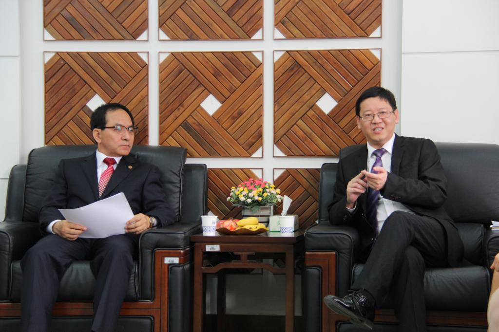 参观结束后,李在熙校长一行与我院领导又进行了亲切的座谈。郑信军院长代表学院致欢迎辞,并详细介绍了学院的学科、专业建设情况。李在熙校长也介绍了韩国京仁教育大学的基本情况。双方就小学教育专业的人才培养模式进行了积极的交流和探讨。