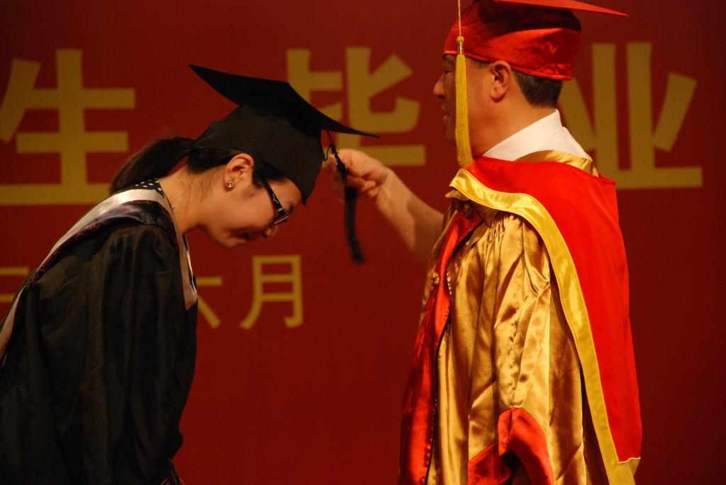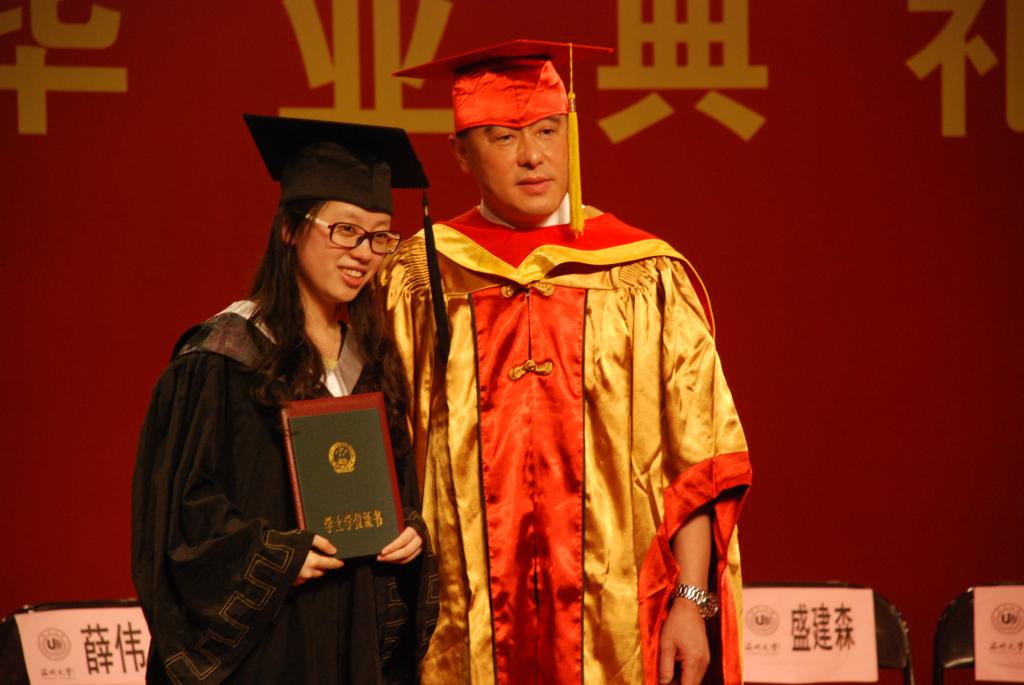 副校长薛伟教授亲自为每位毕业生颁发毕业证书及学士学位证书并合影留念使整场毕业典礼达到高潮。薛校长与每位毕业生亲切握手,将毕业生学士帽上的流苏从从右边拨到左边,这就意味着大学阶段学习圆满结束。学位授予仪式是高等院校一项隆重的学术称号授予活动,对学位获得者具有特殊的教育和纪念意义。校长亲自为毕业生正冠拨苏,颁发证书,是我校的优良传统,对每位毕业生来说都是值得铭记的重要时刻。学位证书、毕业证书授予仪式整整持续了2个多小时,毕业生们被薛校长深深感动,他们一起向薛校长致敬,“校长,您辛苦了,我们热爱我们的母校”道出了所有毕业生此时此刻的心声。