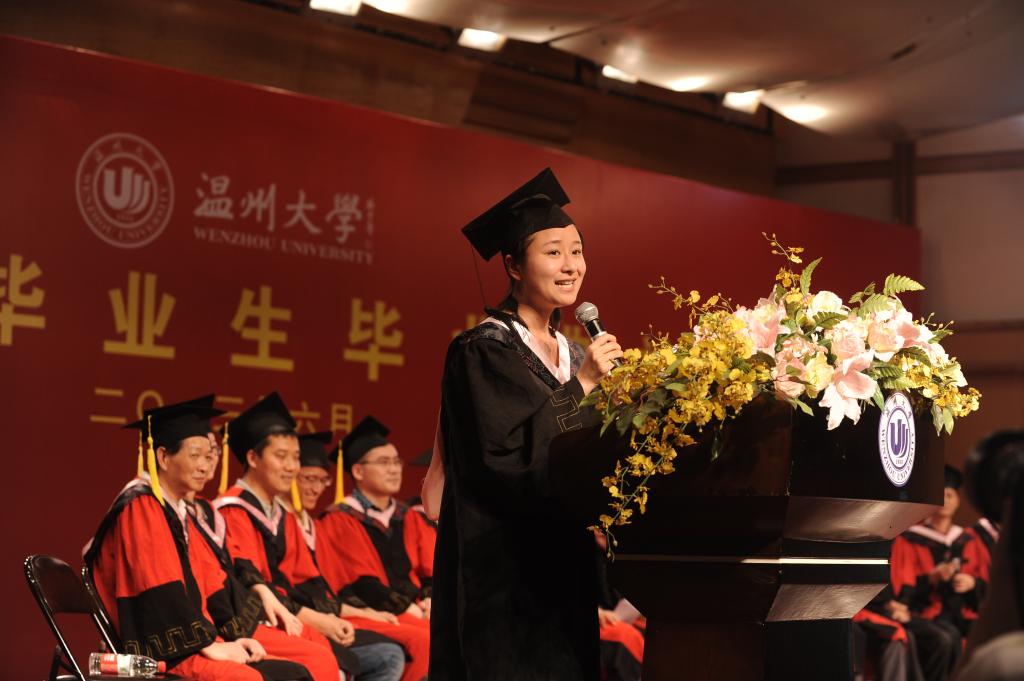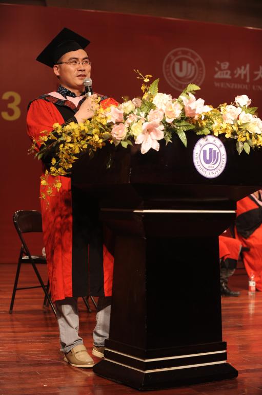 首先,郑信军院长致词。“年年岁岁花相似,岁岁年年人不同”郑院长用那殷切的言辞感谢毕业生为我们留下的美好回忆,并对毕业生们的顺利毕业表示祝贺以及祝愿每位毕业生前程似锦,幸福安乐。他激昂地赞扬学院6名志愿去西北支教的毕业生用青春诉说着他们的人生如夏花般绚丽的举止,肯定了连续三年荣获优良学风班的09学前本,相亲相爱获得“五四红旗团支部”荣誉的09小教中文班,关爱侨乡留守儿童入围中国大学生年度人物的郑洁,还表扬了刻苦学习、锻炼技能的陈占挺和陈学茂等。他说到,这些身边的感动,使我们坚信2013届毕业生必定会将“博、爱、雅、艺”的师范气质在今后的教师岗位上发扬光大,必定会微笑向暖,坚守理想。最后,郑院长带领歌唱由09小教中文改编的《温大北校的日子》,用铿锵的语调愿全体毕业生们用自己独有的方式致青春。接着,各系主任向毕业生们话别。教育系主任折延东老师、心理系主任盛建森老师,教技系主任张新立老师,小教系主任蔡志凌老师、学前系主任曾国老师以各自独特的方式表达了对毕业生的深深祝福。最后,毕业生代表郑洁发言,她以自己亲身的体验愿每位毕业生怀着感恩的心,把所有的不舍化为祝福,开始新的出发。随后,嵇小怡副书记宣读“2013届教师p站视频
