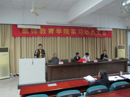 10月31日下午1:00,在学院教务科的组织下,09教技、09心理、09学前实习动员大会在北校3号楼101大教室胜利召开了。出席本次会议的有学院分管副院长彭小明教授、各系主任和书记、各系带队指导教师,以及09教技、09心理、09学前专业126名同学。本次动员大会由教务科胡孙贵老师主持。