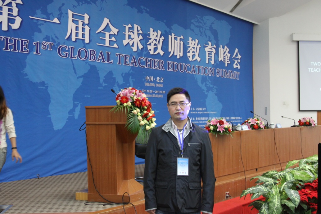 2011年10月28-31日,由教育部普通高校人文社会科学重点研究基地北京师范大学教师教育研究中心承办的“第一届全球教师教育峰会”在北京师范大学主行。本届会议主题是:如何在21世纪培养教师:东方与西方的对话。这是一次规模最大,级别最高的教师教育国际学术会议。参与会议的代表有来自于美国、英国、加拿大、澳大利亚、苏格兰、比利时等9个国家和中国台湾、香港地区和大陆专家学者共计420余人。会议共有20个主题发言,5个分会场,24个专场,还有2个特别专场。我院胡来林教授于28日下午做了题为“Design Research on Implementation Scheme about Practical Learning in Teacher Education Specialty ----Educational Technology as an example”,与会者对我校教师教育实践课程体系改革具有深厚的兴趣,并提了多个感兴趣的问题,胡来林教授做了一一回答。在30日下午胡来林教授成功主持了教师培训专题讨论。