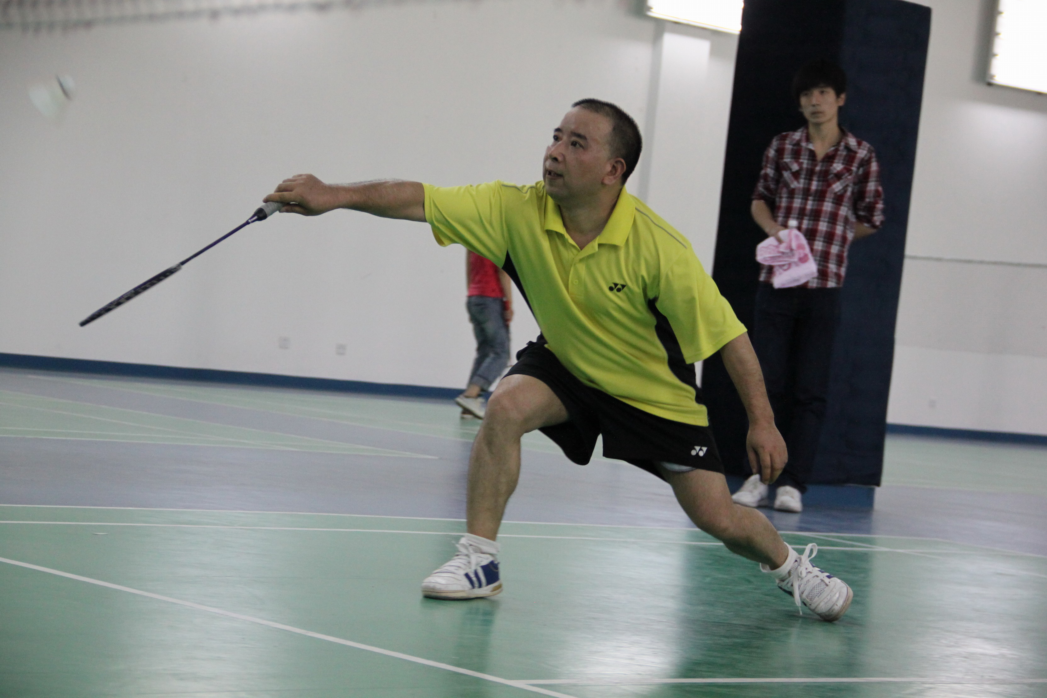 伴随着清脆的哨音响起,比赛正式开始了。啦啦队以及等待上场拼杀的参赛教师将羽毛球场围成一圈,为正在比赛的教师呐喊助威,一时间欢呼呐喊声此起彼伏。相对于女教师队的欢声笑语来看,男教师队就颇有一番狼烟四起的意味。只听得“啪”地一声,球顿时像离弦的箭,带着哨音,呼啸地飞向对面。这时,金老师迅速调整方位,侧过身去,小腿下蹲,像一只含羞的麋鹿,但机智勇敢,就在球快要落地的时候,果断地将球救起,轻轻一拨,恰好过网。“好球!”现场响起了一阵热烈的掌声。大家还沉浸在方才那记妙球中时,新一轮的攻势又发起了。只见双方你来我往,打了十几个回合难见高下。我用蜻蜓点水来回敬你的大力扣杀,你用恰好压线来破解我的刚好过网。不知不觉,比赛已经接近尾声,但激情昂扬的老师们意犹未尽,打得不亦乐乎。此时此刻,对他们来说比分已经不重要了,重要的是在比赛过程中享受到的激情和快感。