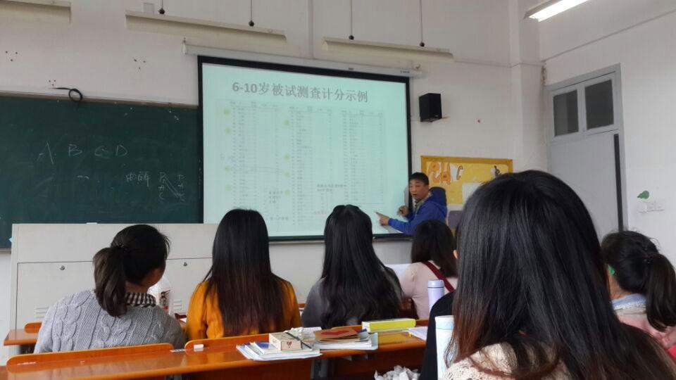 心理测量工作坊在北校区3-403教室对心理测量工作坊的全体成员开展了特殊儿童心理测量的注意事项和PPVT测验的讲解及技能培训活动。