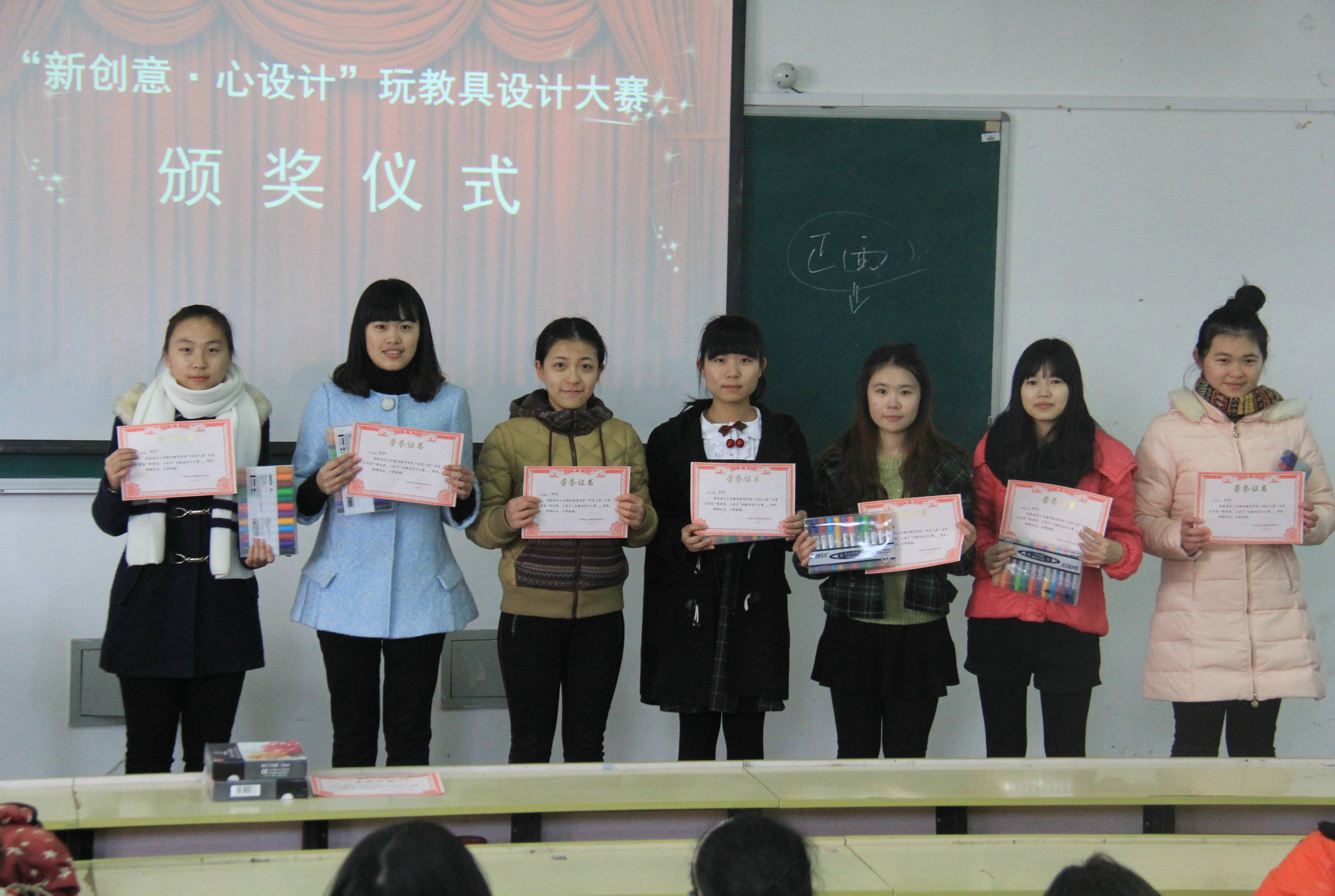 为贯彻我院“师范气质”的人才培养方略,提高师范生教育创新意识与能力,我院学前教育所举办了面向全院师生的“新创意,心设计”玩教具设计大赛,并于1月14日下午举行颁奖仪式。此次大赛,共有来自全院各专业四十多件作品参赛,经过专家评选,二十件作品获奖。学前教育研究所副所长李晓燕博士为获奖者颁发了奖状和奖品。