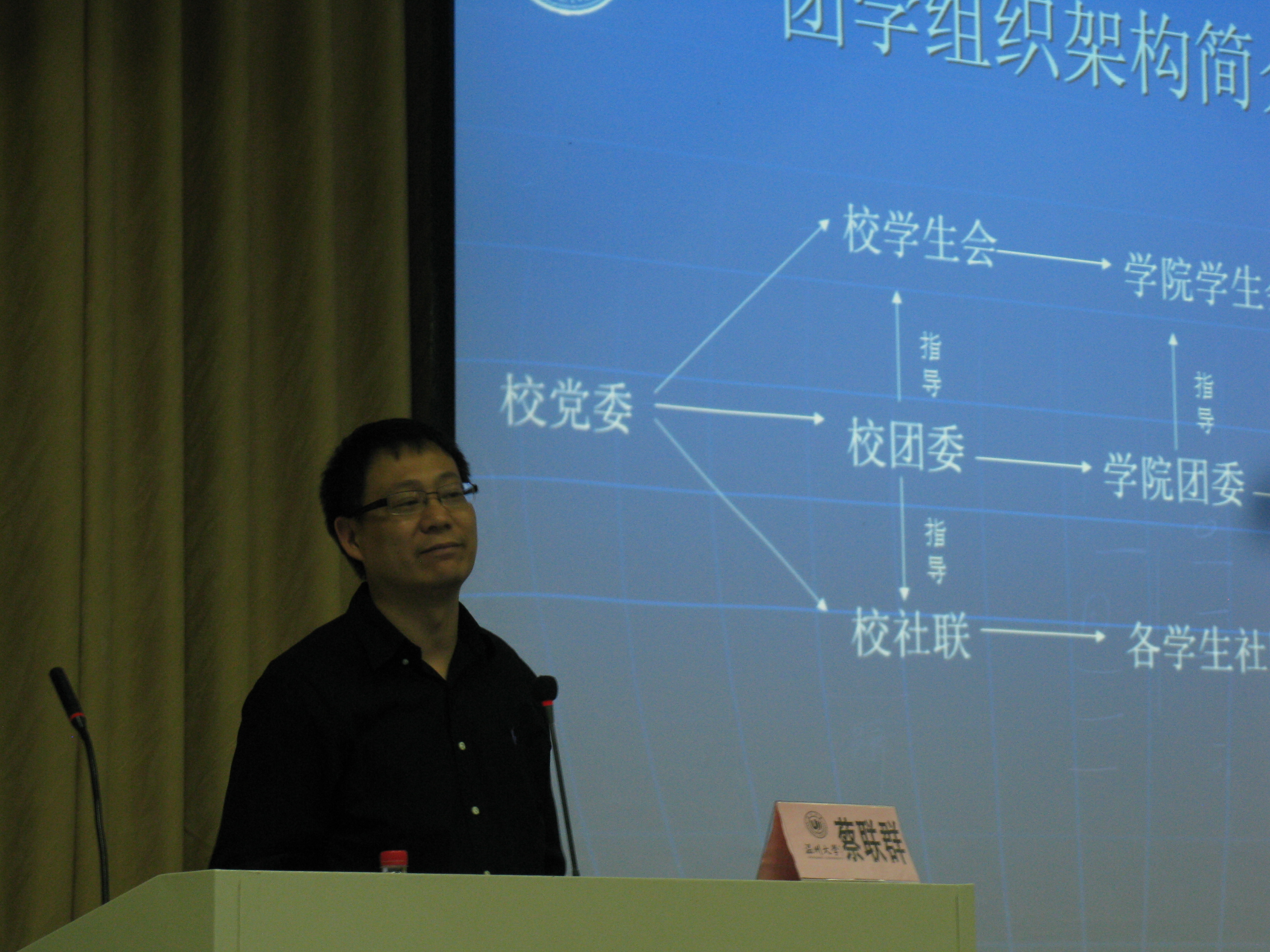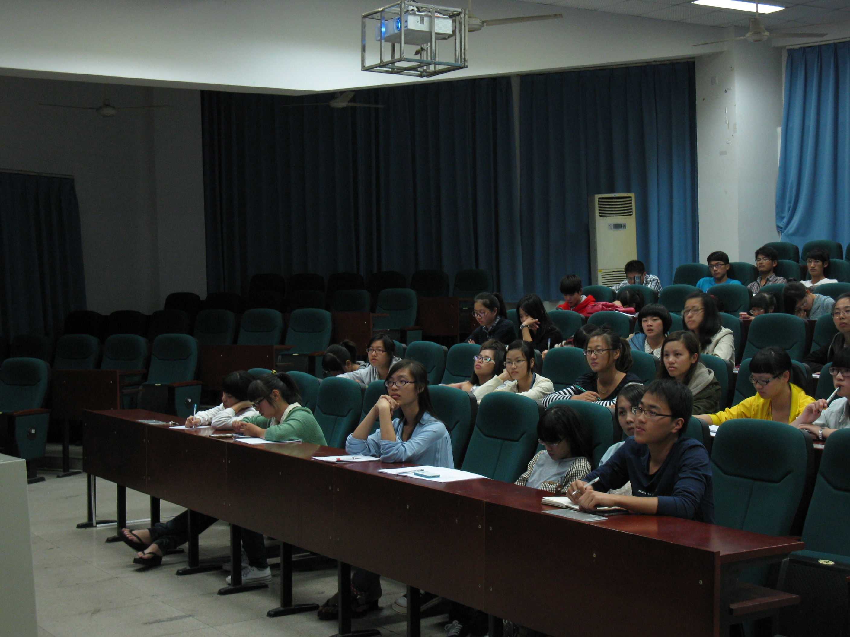 20121019日傍晚,晚霞万丈,凉风习习,院学生会于3号楼101教室开展了本学期的第三次团干培训。六点左右,院团委学生会的全体成员便陆续进教室就坐,前来参加由蔡联群书记主讲的讲座。
