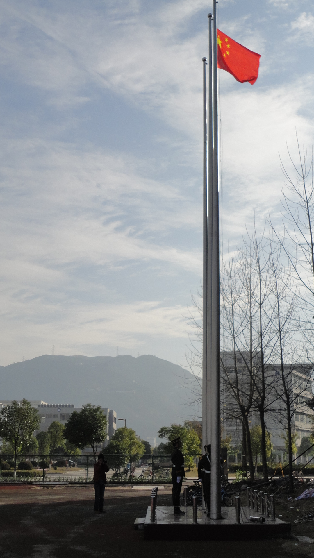 为进一步激发我院师生的爱国爱校热情,学院党总支组织师生参加学校元旦升国旗仪式。 2013年1月1日,在新年的第一天,学院两百多名师生和院党总支书记蔡联群、副书记嵇小怡一起,齐聚在国旗下,共同见证了这庄严而又喜庆的时刻,以积极向上的精神面貌迎接充满希望的2013年的到来。