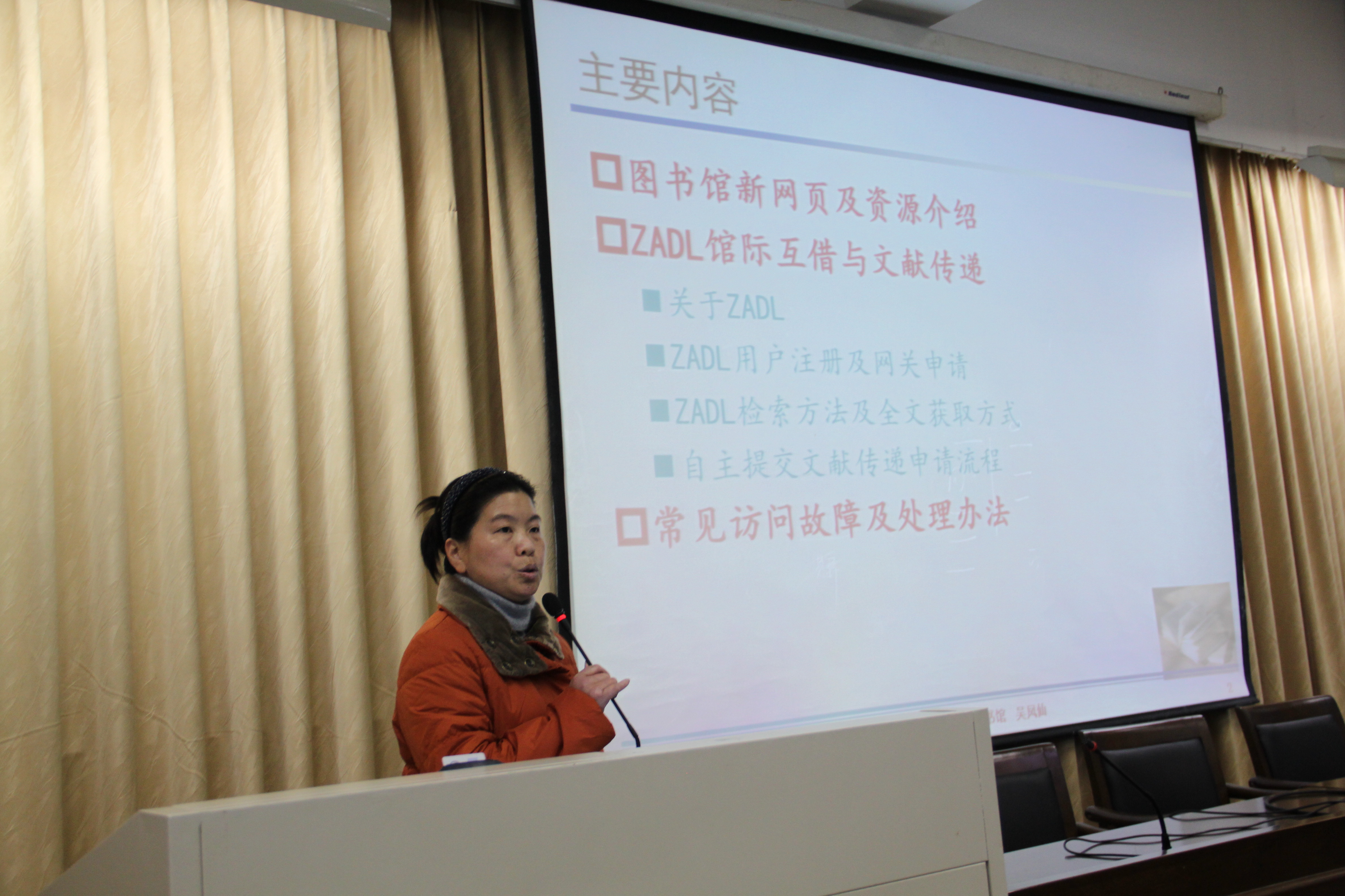 会上,图书馆吴凤仙老师还为大家做了“如何使用高校图书馆数字资源”的专题讲座。
