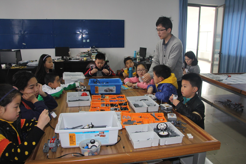 2016319上午9点,广场路小学四十多一年级至六年级的小学生们在家长的陪同下,来到我院6号楼教师教育实验中心参观体验。在实验中心老师的带领下小学生们分别参观了乐高机器人实验室、 教育机器人实验室、未来课堂实验室和小学科学实验室。