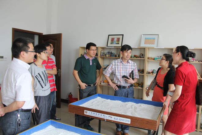 在学院领导和中心教师的陪同下,他们主要参观了眼动实验室、团体辅导实验室、心理学实验室、沙盘演练室、心理咨询模拟室、ERP实验室等,对我院心理实验室有了较全面的了解。在沙盘演练室,胡院长介绍道,沙盘游戏疗法本身不但可以起到心理诊断与治疗的作用,同时还可以起到心理辅导与教育作用,已被逐渐运用于学校心理教育与心理治疗,并让教师现场体验。