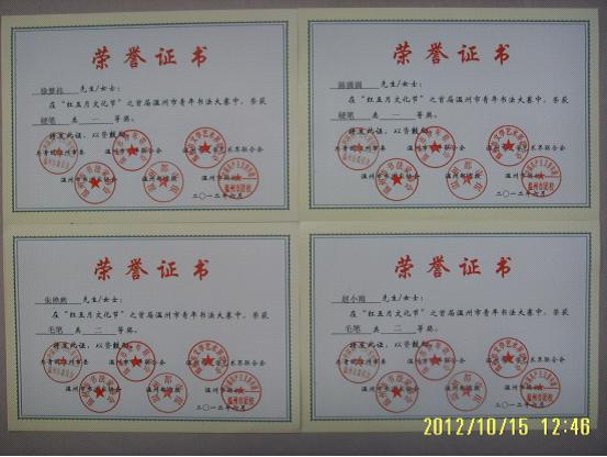 团委荣获优秀组织奖。 本届青书赛是团市委在全市范围内开展“红五月文化节”活动的重要赛事,由共青团温州市委委会、温州市文学艺术界联合会、温州市青年联合会主办,温州都市报、温州市书法家协会、温州市团校承办,参赛对象为全市18至45周岁的青年书法爱好者。大赛共评出毛笔书法获奖作品73幅,硬笔书法作评49幅。