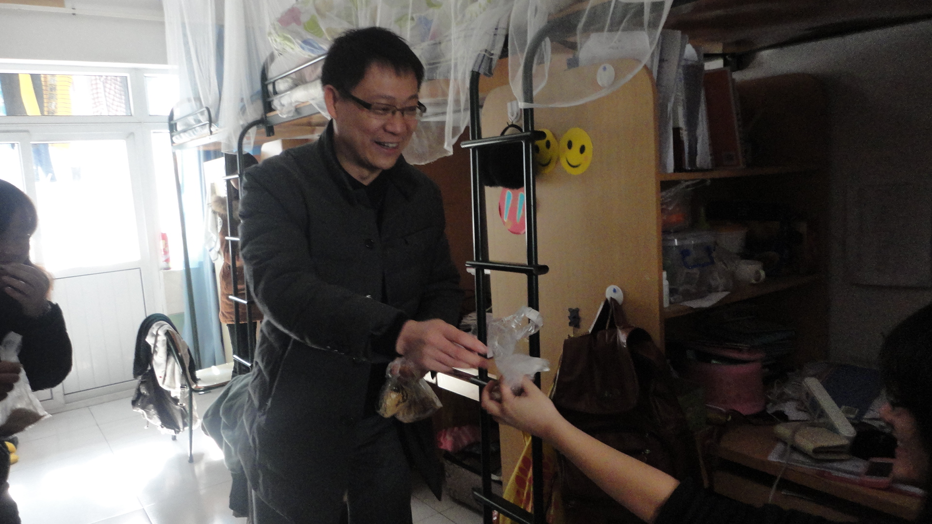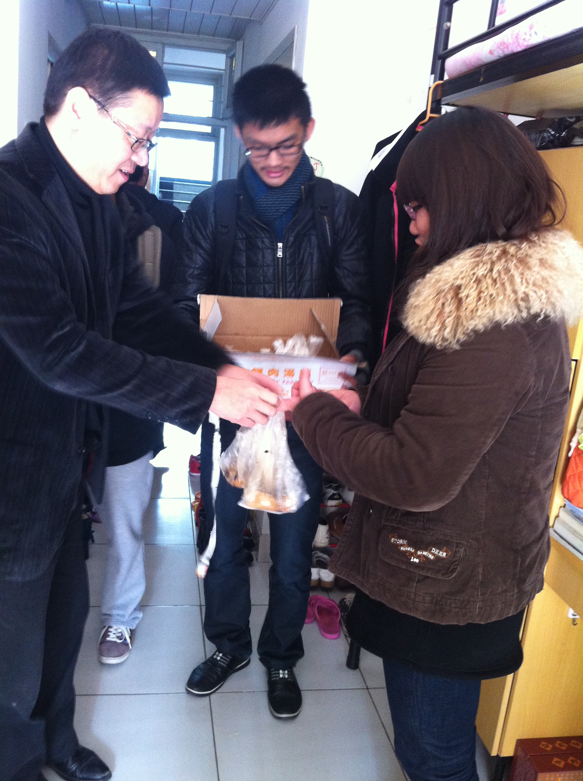 敲开寝室的门,同学们看到老师给他们送来的热乎乎的汤圆,瞬间就被温暖的感觉所围绕。有些同学说自从知道了学院将会有这样一个暖心活动后,连饭都不吃就在寝室里坐等汤圆。郑院长亲切地问了一些有关于同学们在生活中和学习中遇到的困难,还叫同学们有什么困难要及时找老师或者是学区的老师,要密切联系寝室导师。对大四即将毕业的同学们,郑院长也祝愿同学们在即将到来的工作生涯中有一个良好的开端。蔡联群书记带着冬至汤圆来到同学们寝室里,亲切询问同学们的近况,提醒同学们注意合理安排期末复习时间,注意劳逸结合,同时,他真诚地祝愿同学们冬至节日快乐。
