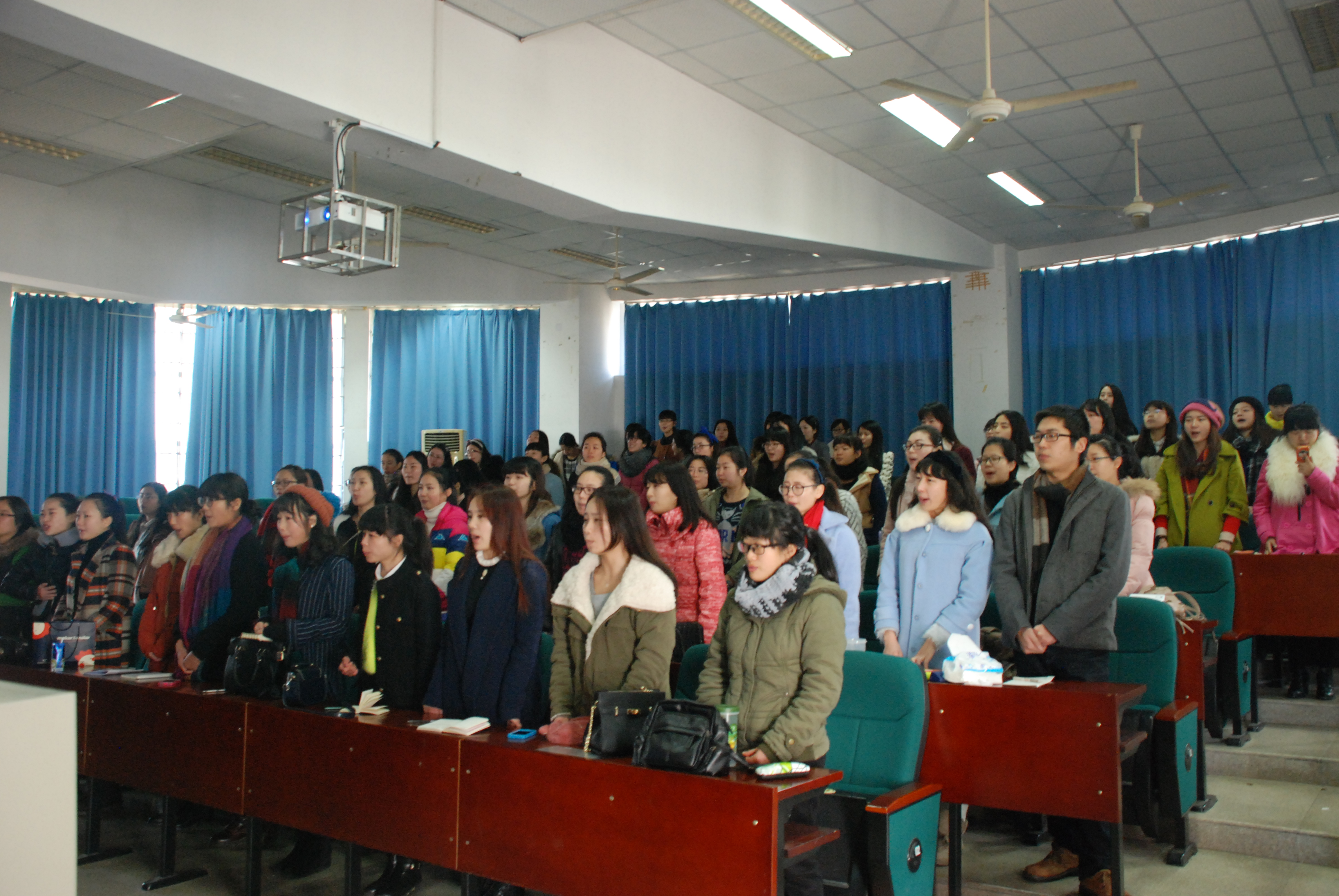3号楼101教室里坐满了我院学前专业的本专科毕业生,她们早早等在这里,期待着温州市第八幼儿园金晓群园长为同学们做考编辅导讲座。