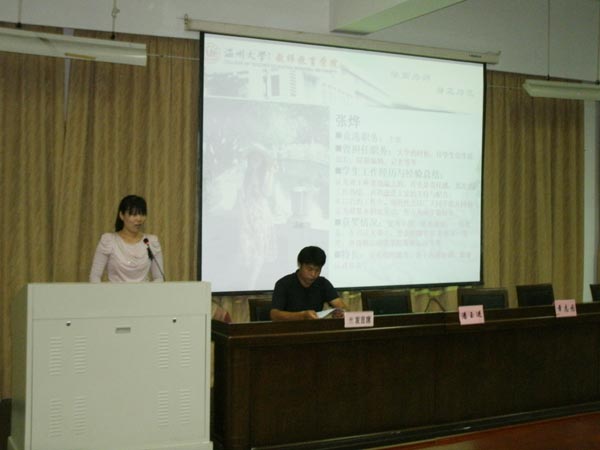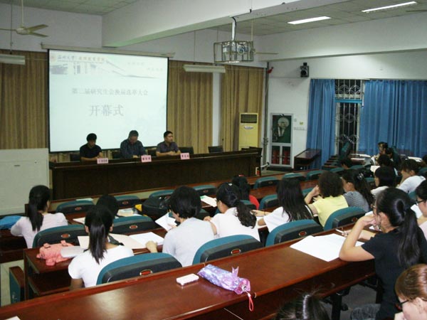 潘玉进副院长致大会开幕辞,他高度肯定了我院第一届研究生会的工作业绩,并预祝本次选举圆满成功。
