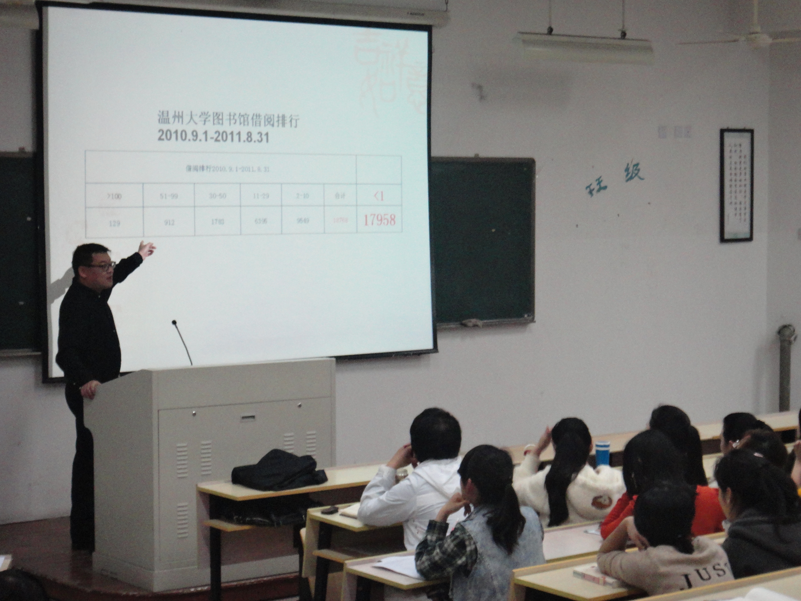 讲座伊始,王部长以“北大教授痛心疾首:80后学生成绩稳步下降”的社会事例引出“学风”话题,吸引了同学们的眼球。随后,更是引用国内外著名学府哈佛大学、复旦大学的学风对比,引发在座同学的深思。不仅如此,在介绍了其他高校的学风之后,王部长更是用一个个直观的数据向大家展示了几年来我校的学风变化动态,可谓图文并茂、生动形象。