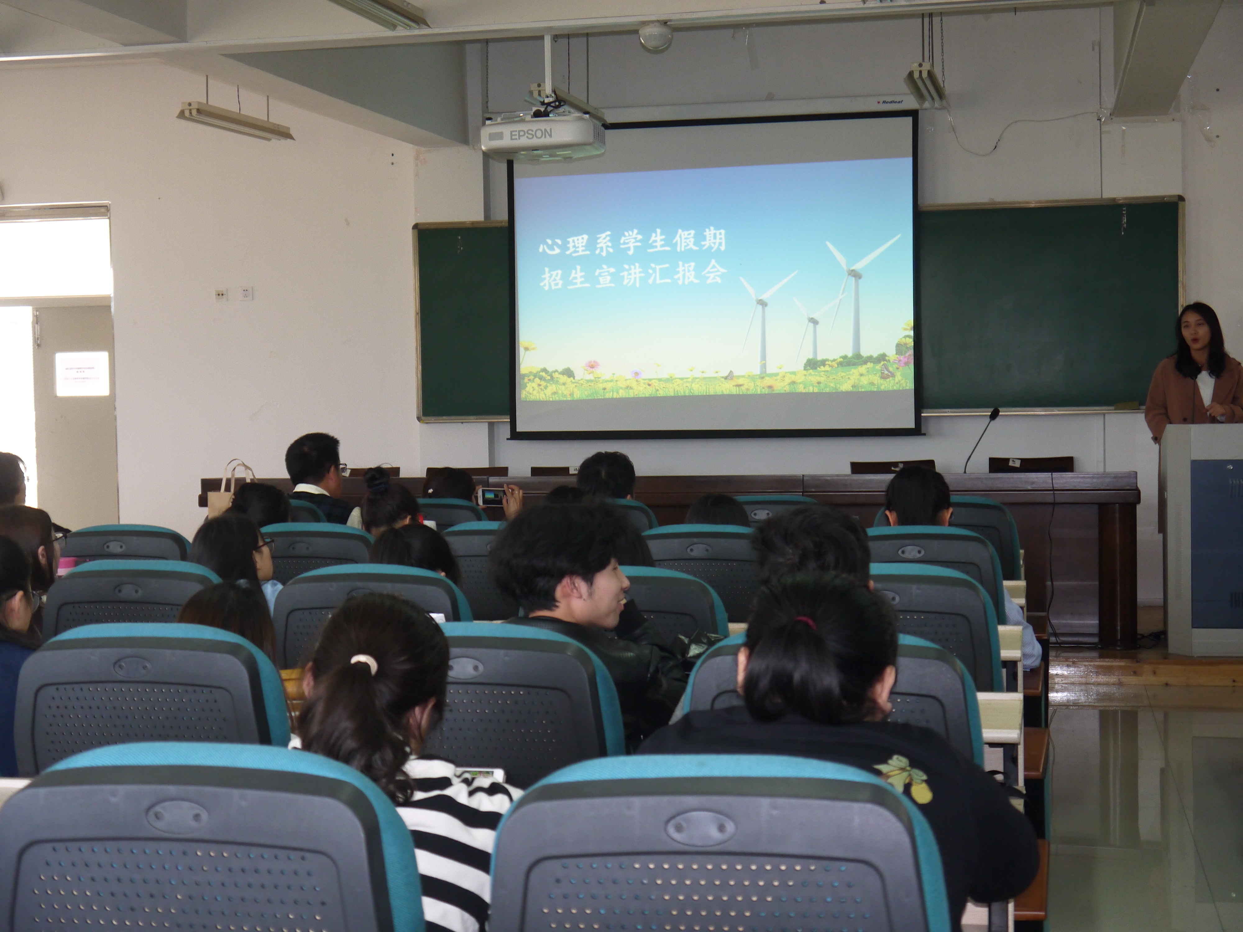 心理系学生假期招生宣讲汇报会在热烈掌声中圆满落幕。这次汇报会留给师生们的感悟是当初我走向你的时候,我原想捧起一簇浪花,你却给我了整个海洋。