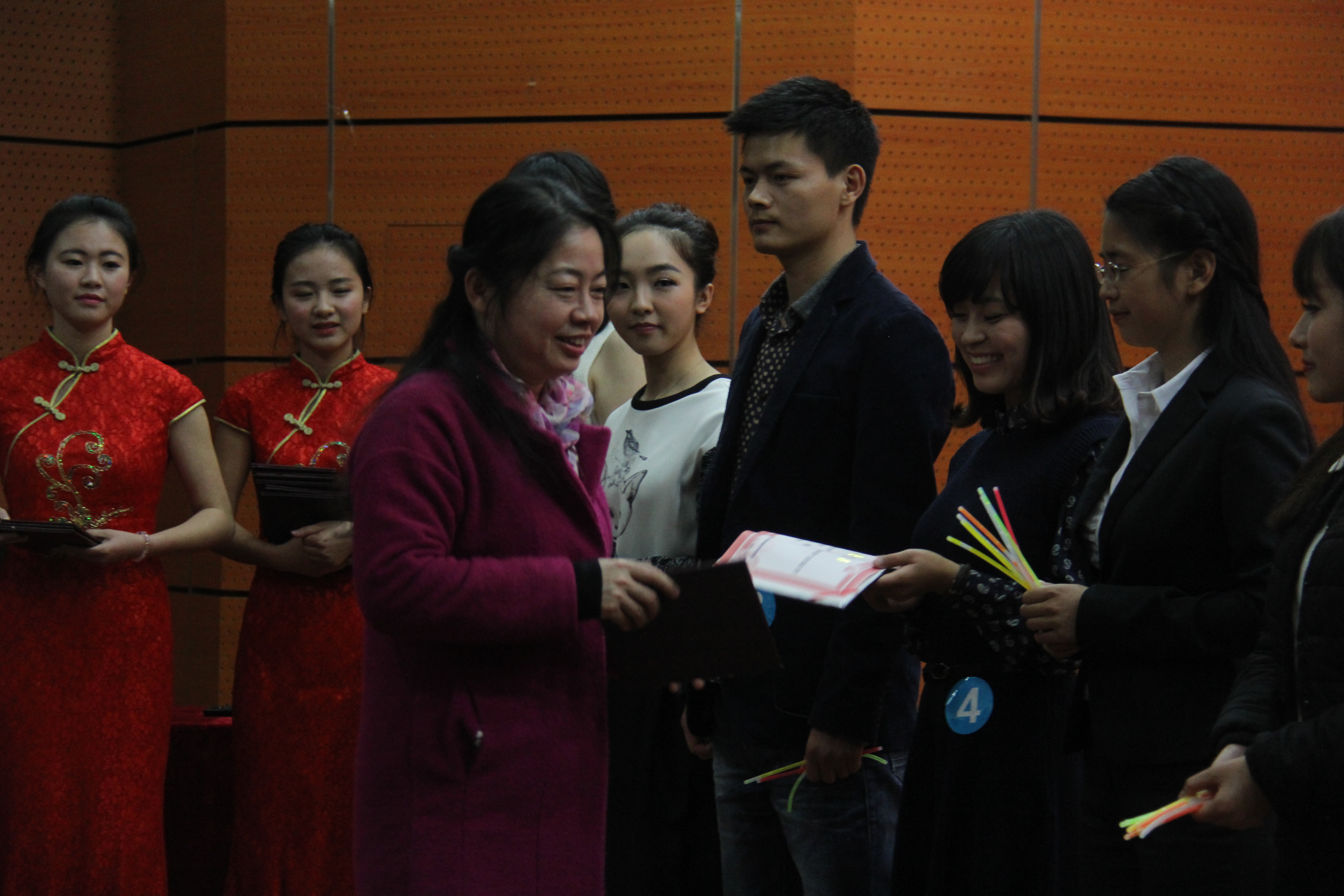 四个环节告一段落,由大众评审进行投票。5号童浦鑫选手和6号包姗姗选手票数最高,获得最佳人气奖。4号陶云瑛和7号叶郁嘉获得入围奖。那么,“博”、“爱”、“雅”、“艺”四大形象大使究竟花落谁家呢?分别是来自14教技的孔雨涵,12学前本的王万荣,12小教中文的李扬扬和来自14小教1班的张怡静。此外,本次大赛的最高奖项“四项全能奖”的最终得主为14学前大专1班的包姗姗。最后,评委嘉宾为同学们颁奖,并合影留念。