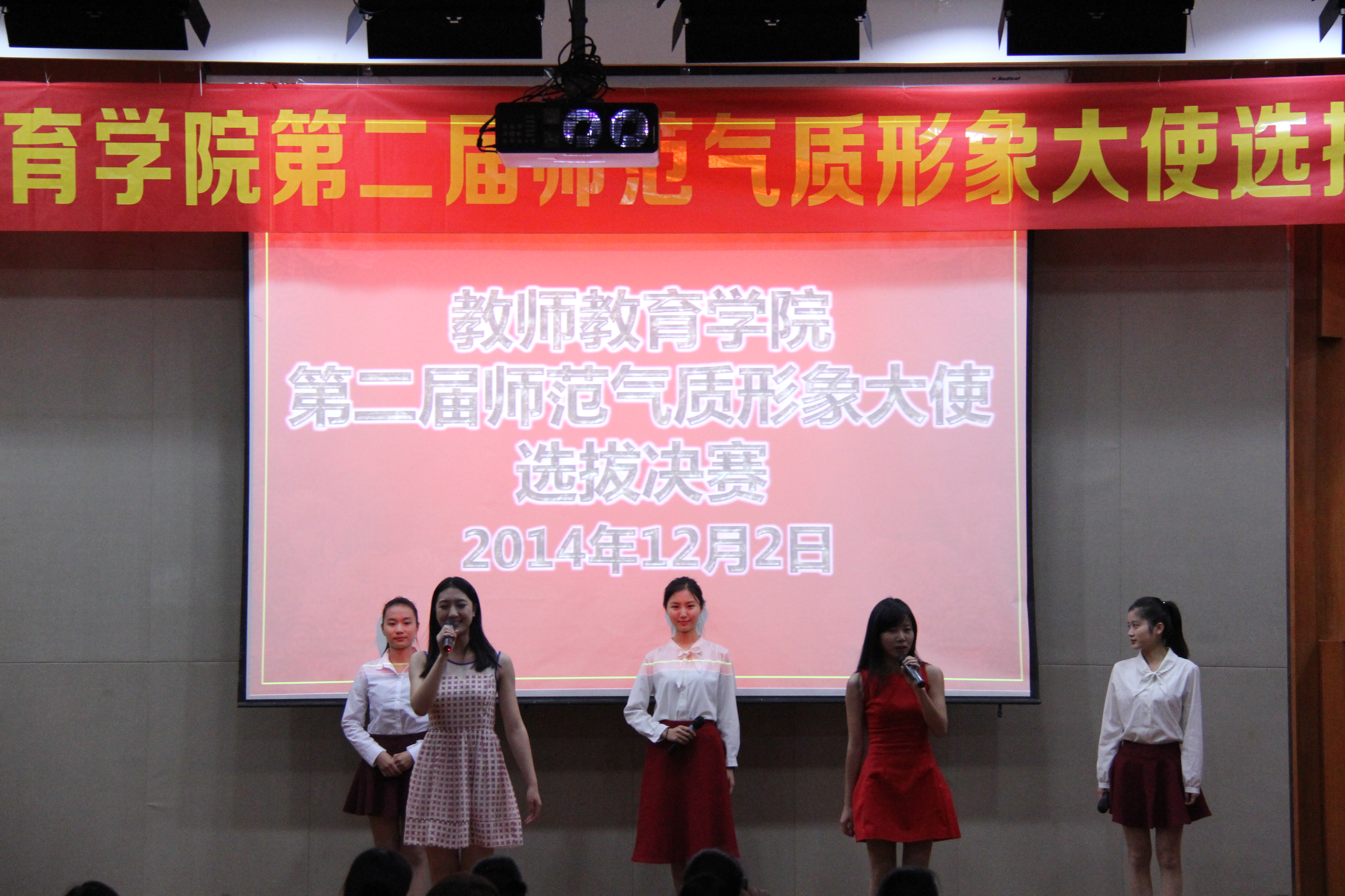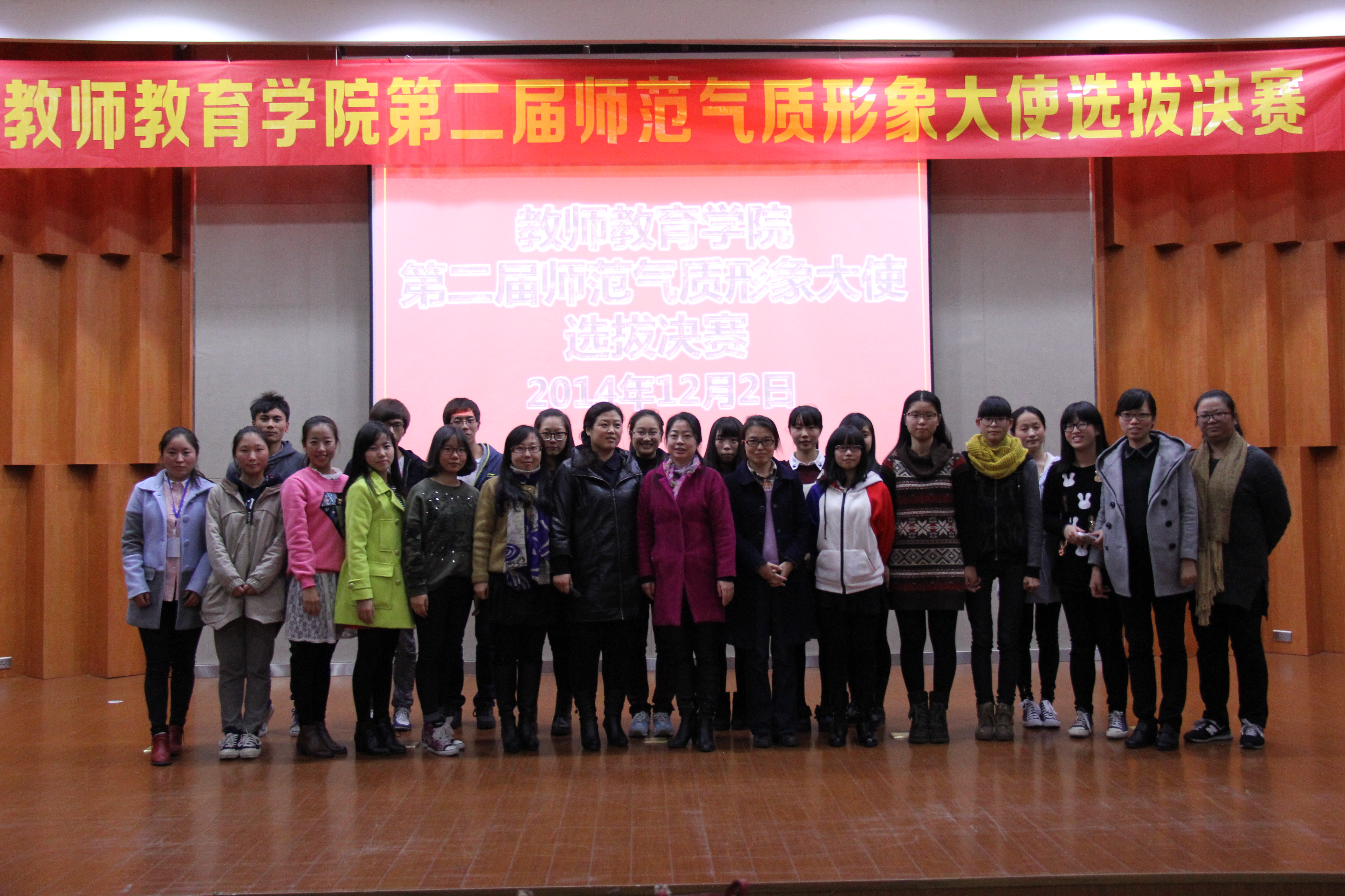 第二届师范气质形象大使选拔决赛在南校雁山厅举行。到场的嘉宾有学院党总支副书记嵇小怡老师,教技系主任张新立老师,小教系书记刘海霞老师,心理系卢佳老师,学前系杨利霞老师,以及来自p站视频